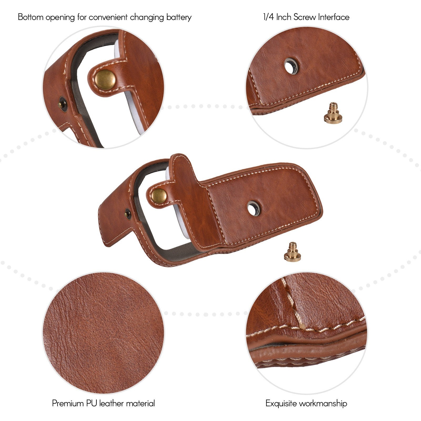 Camera Half Case Premium PU Leather Half Body Case with Bottom Opening 1/4 Inch Screw Hole Replacement for Canon 5D3 5D4 - Brown