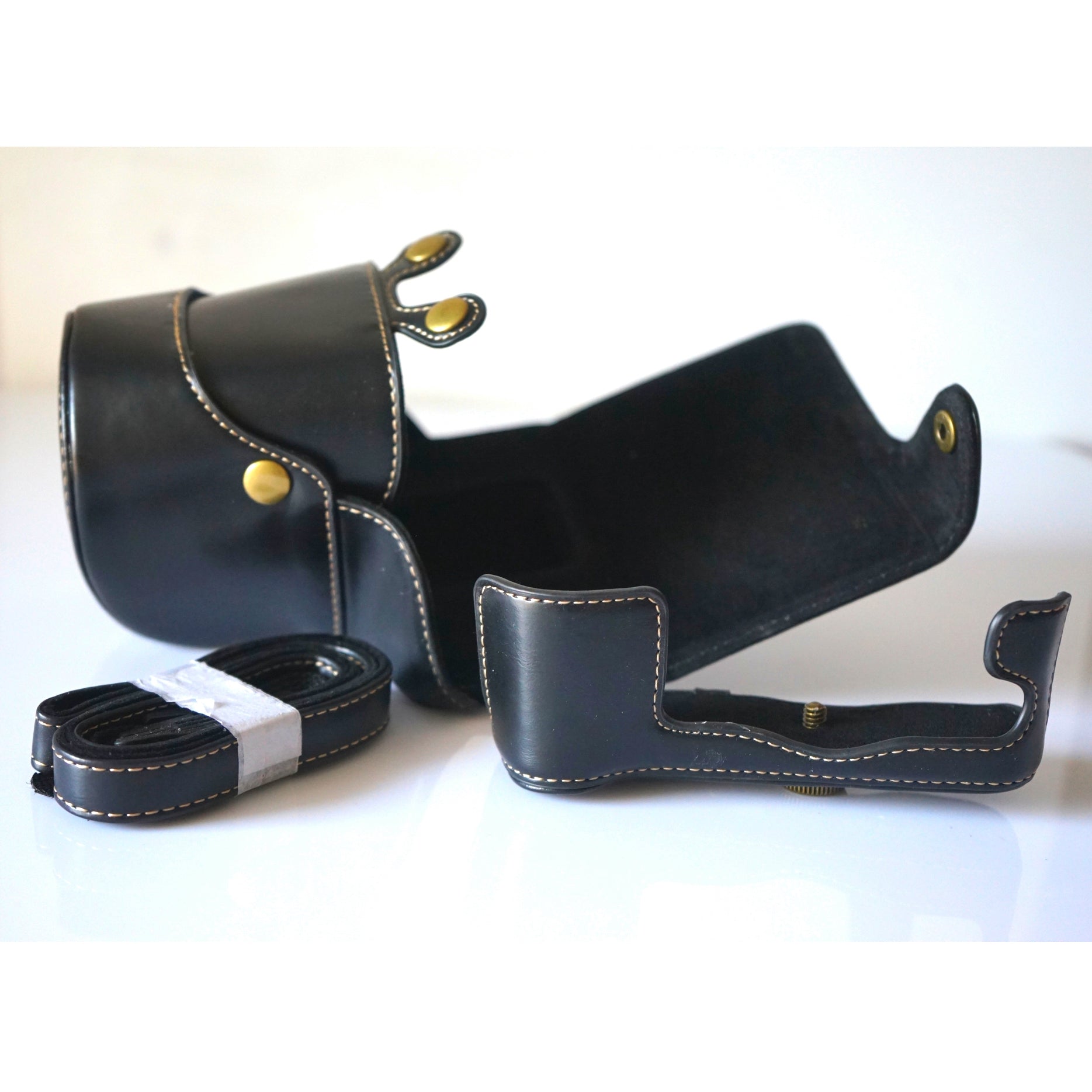 Detachable PU Leather Camera Case + Strap for Fuji Fujifilm X-T2 - Black