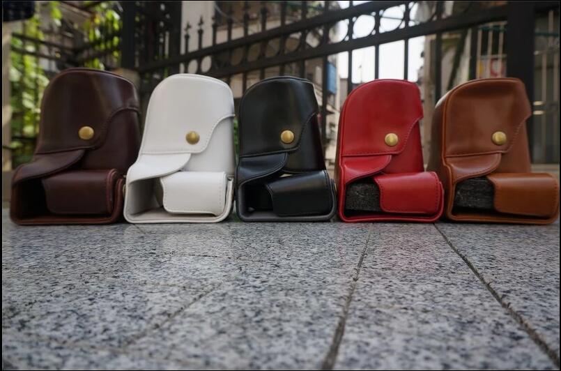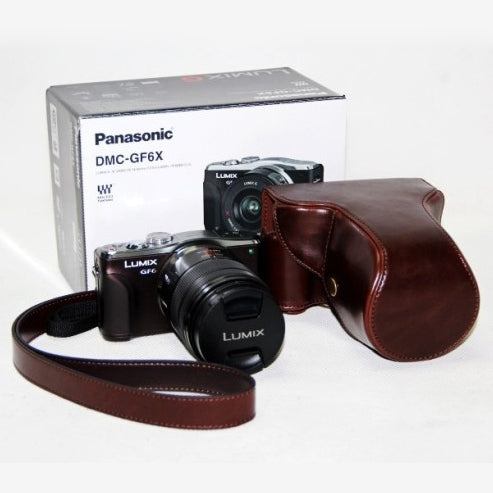 Detachable PU Leather Camera Case + Strap for Panasonic GF6 with 14-42mm Lens - Coffee