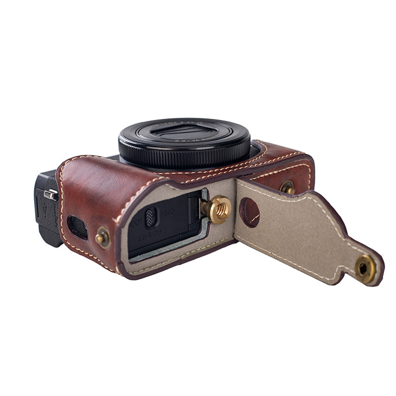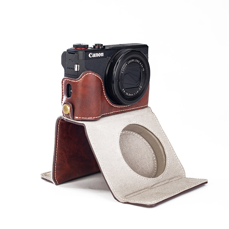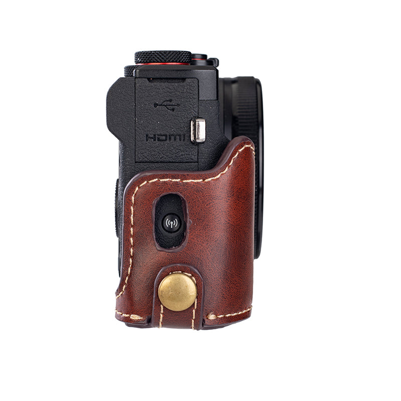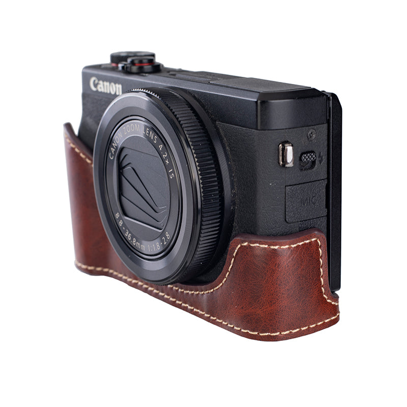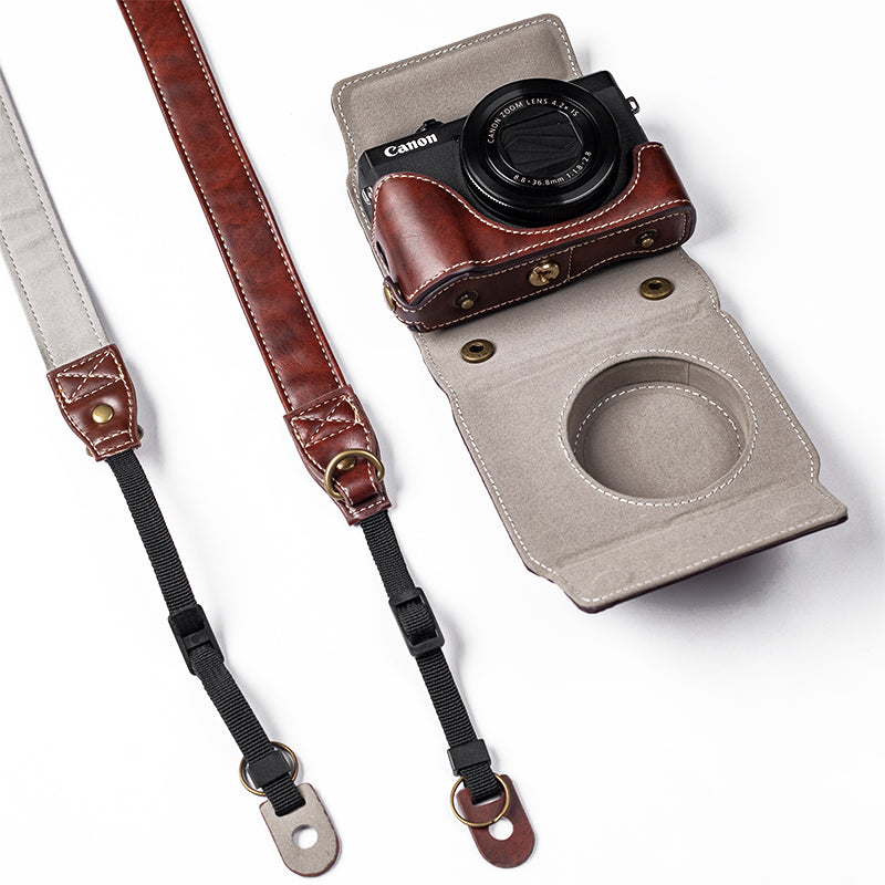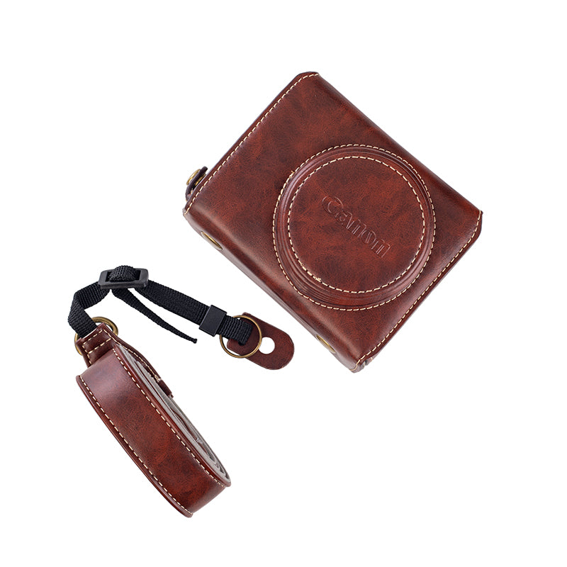 for Canon G7 X Mark III / G7 X Mark II Detachable PU Leather Camera Bag Battery Opening Design Protective Cover with Shoulder Strap - Crazy Horse Texture / Coffee