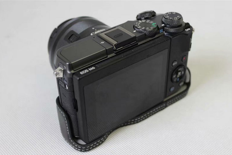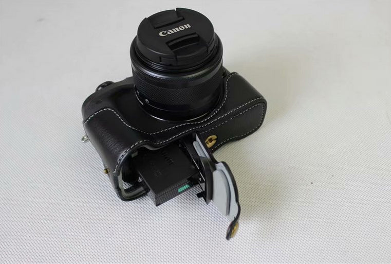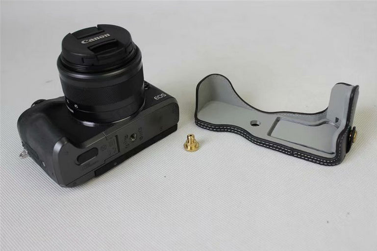 Genuine Cowhide Leather Half Protective Bag for Canon EOS M6 Digital Camera - Black