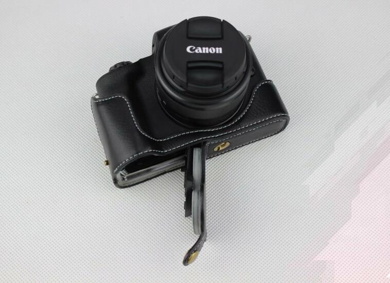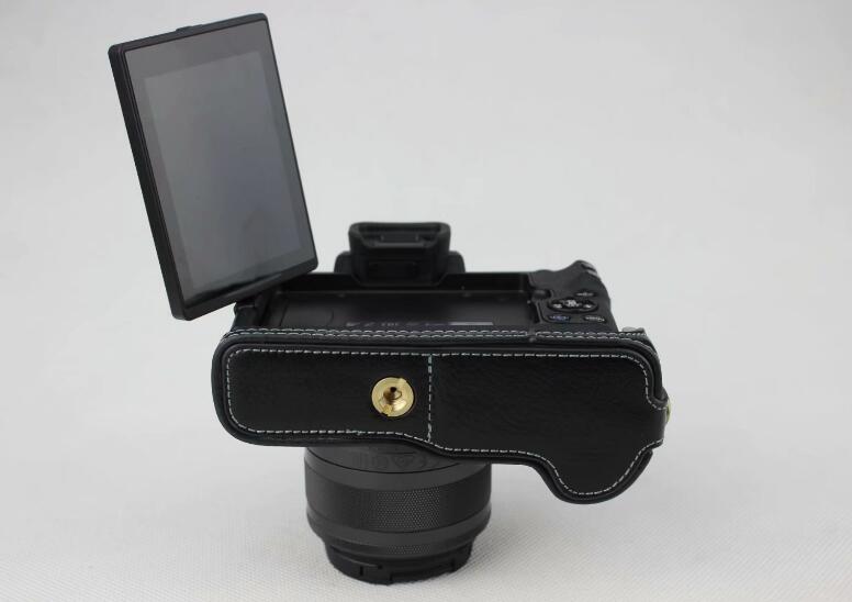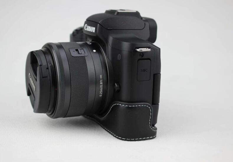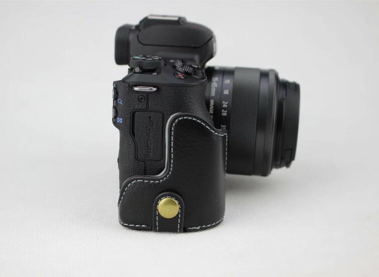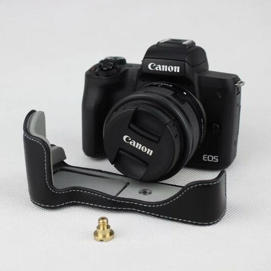 Genuine Leather Half Bottom Camera Case for for Canon EOS M50 - Black