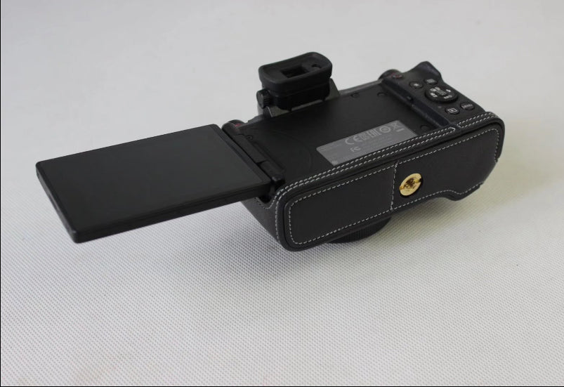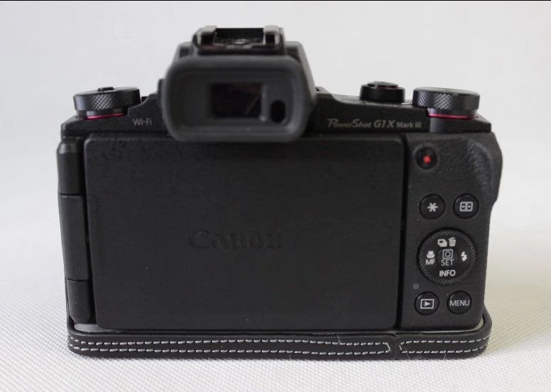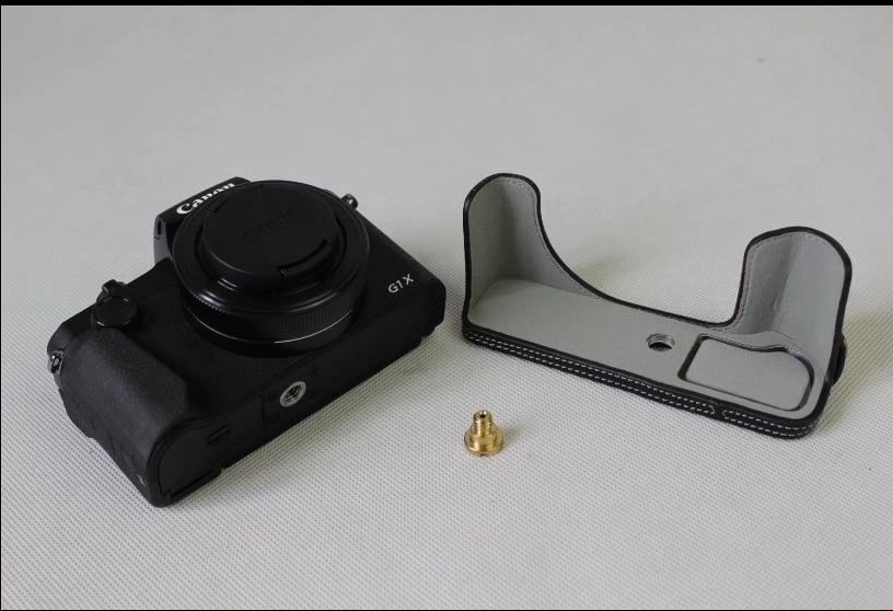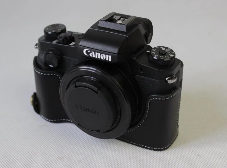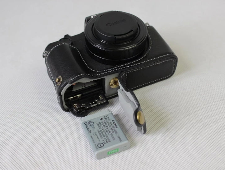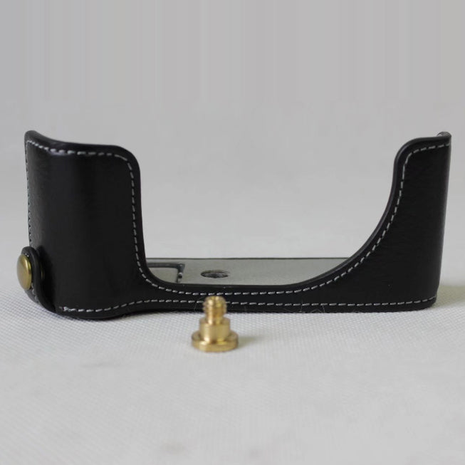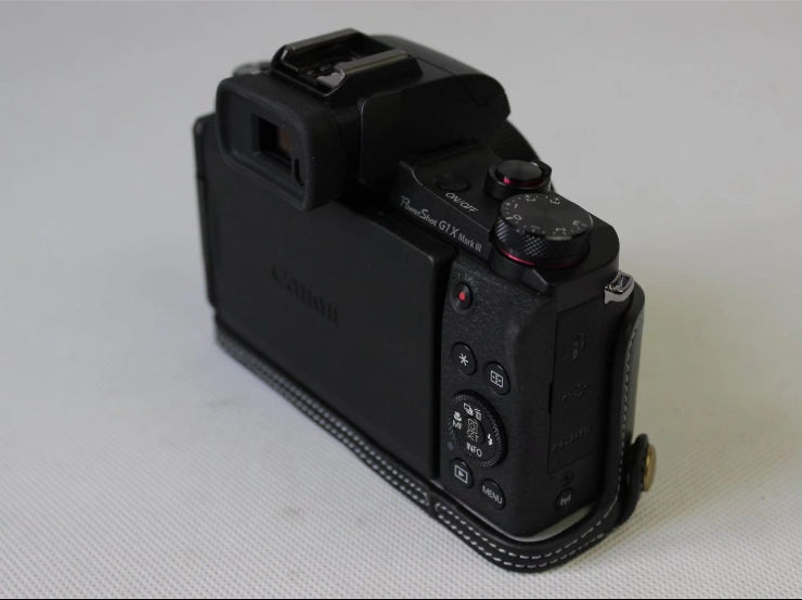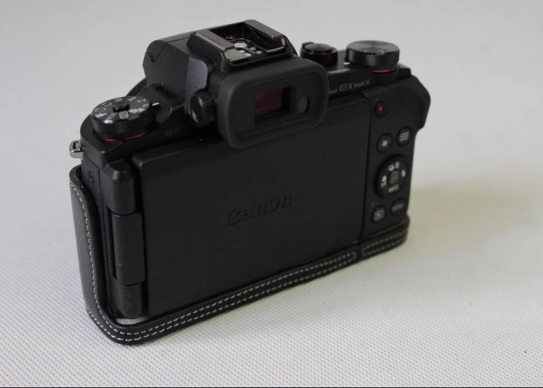 Genuine Leather Half Camera Case Bag Cover Protector for Canon G1X Mark III - Black