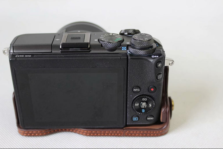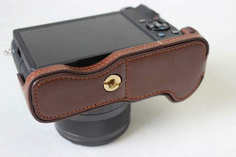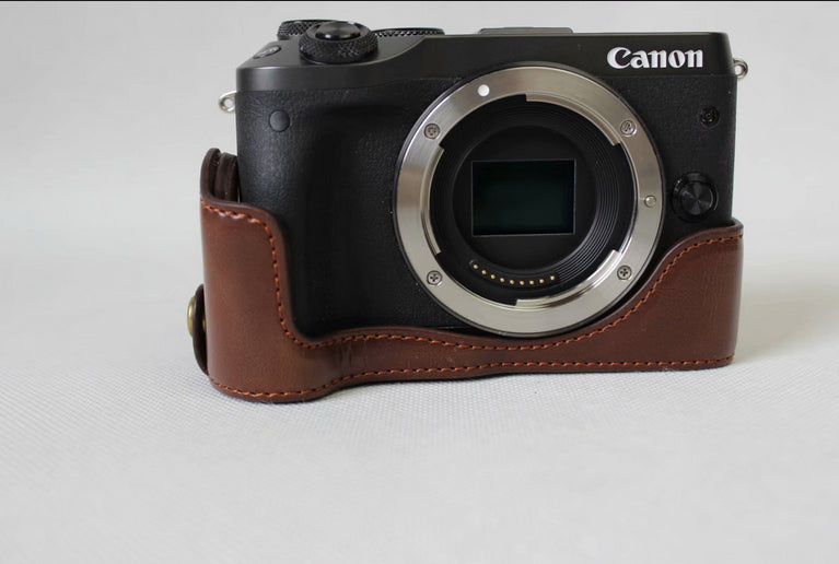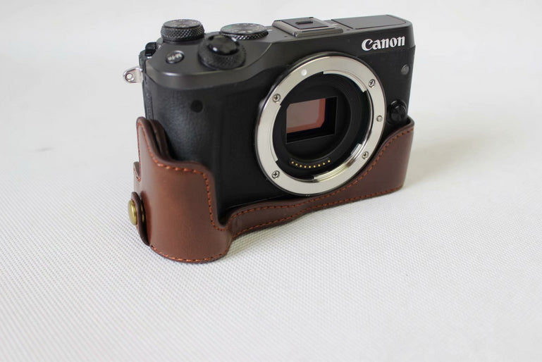 Half Camera PU Leather Protective Bottom Mount Cover for Canon EOS M6 - Coffee