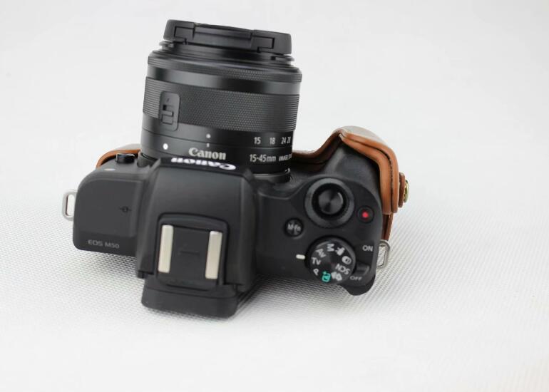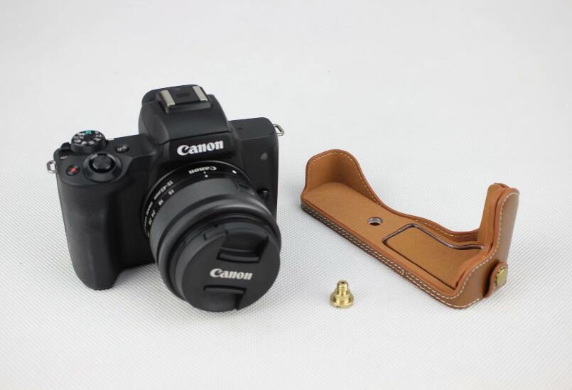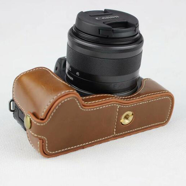 Half Camera PU Leather Protective Case for Canon EOS M50 - Brown