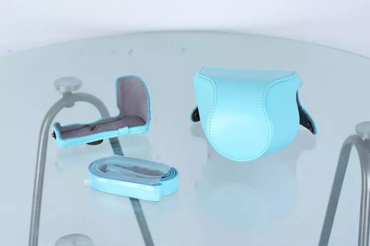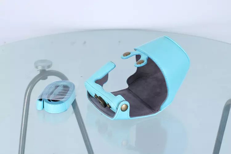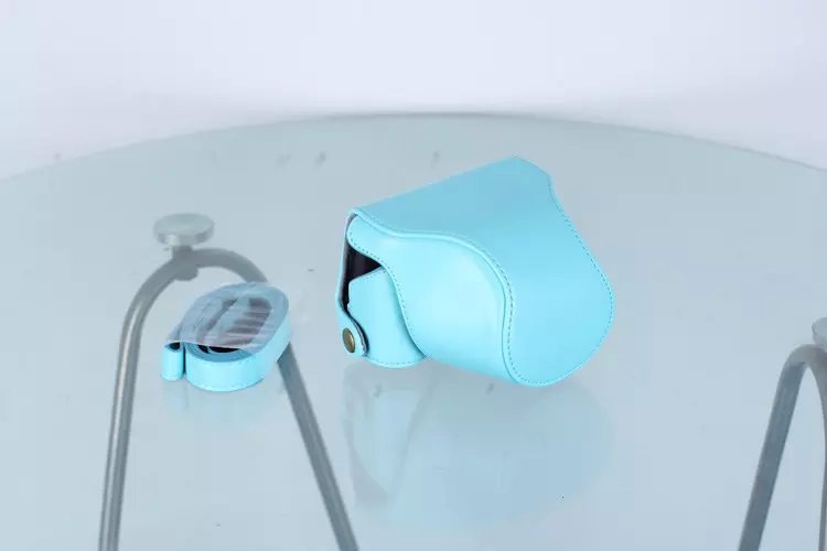 Leather Protective Camera Case with Shoulder Strap for Nikon J5 with 10-30mm Lens (Taiwan Version) - Blue