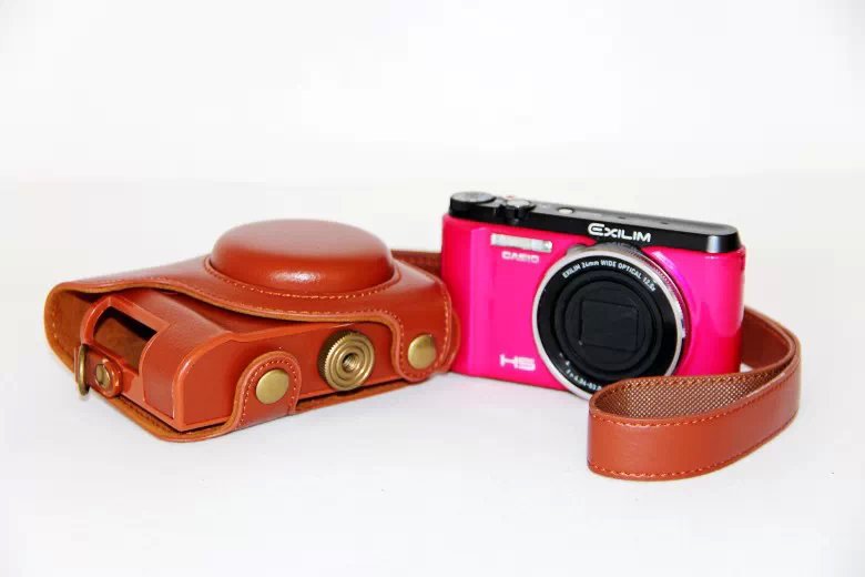 Protective PU Leather Camera Cover Casing + Shoulder Strap for Casio ZR1000/1200/1100/1500 - Brown