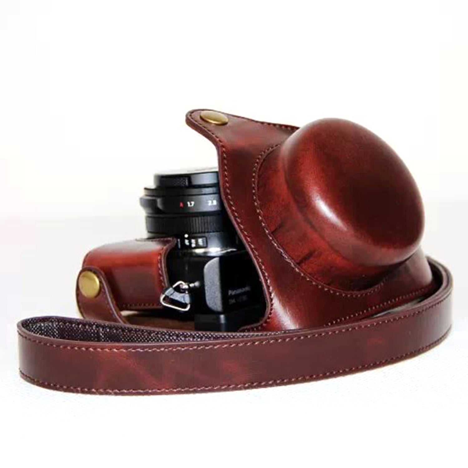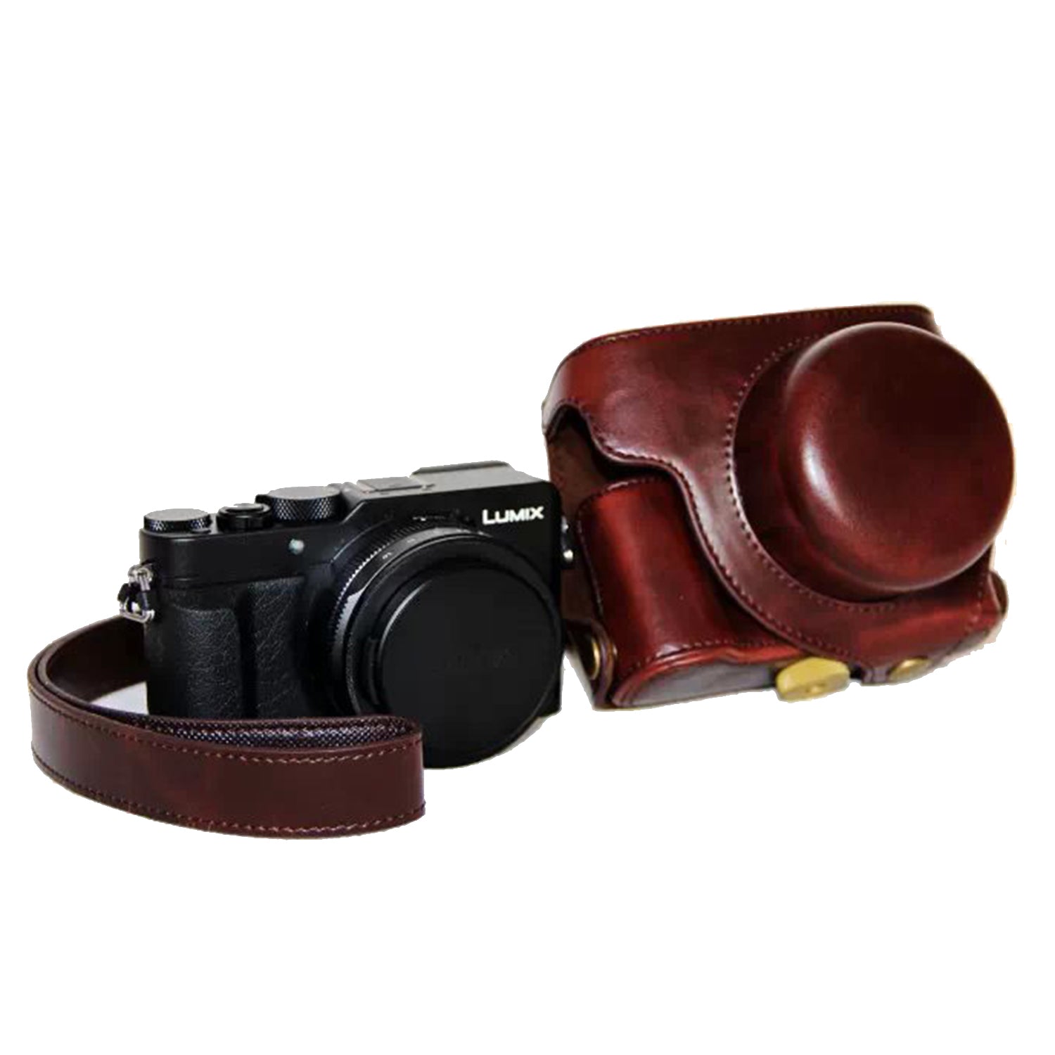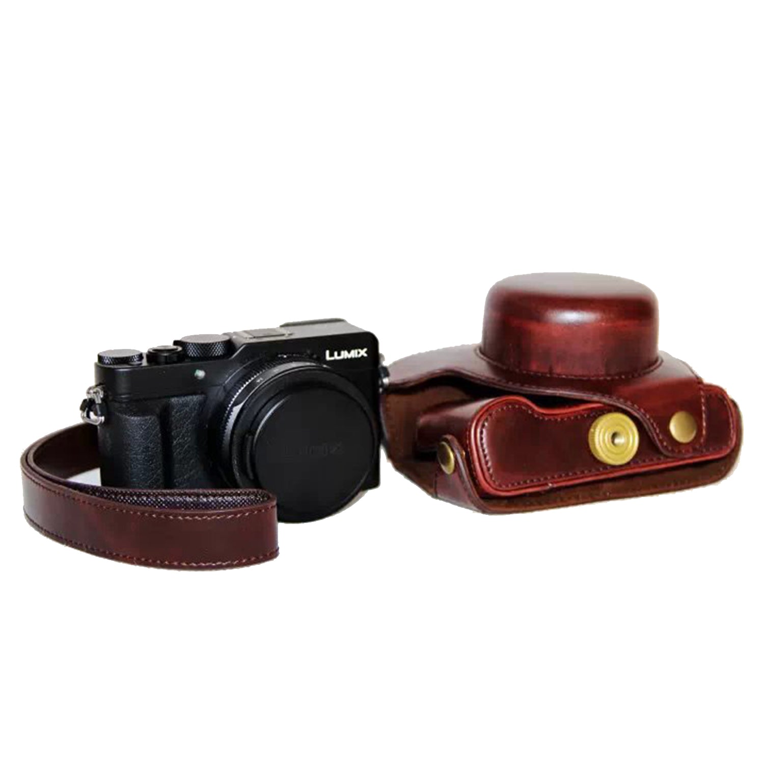 PU Leather Camera Bag Protective Shell with Strap for Panasonic LX100 - Coffee