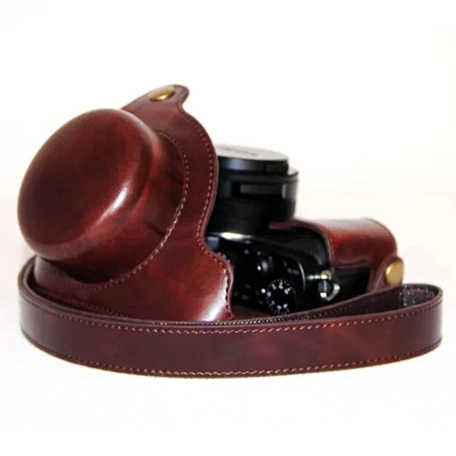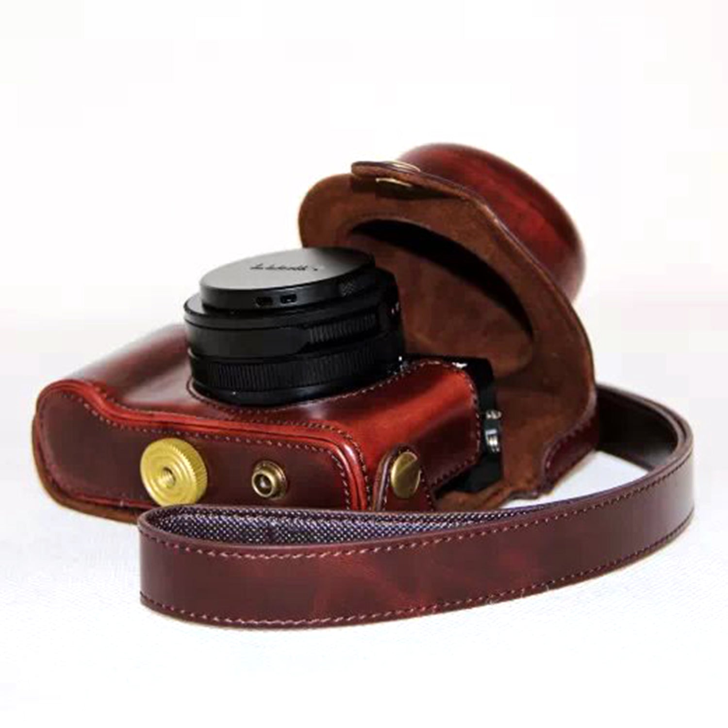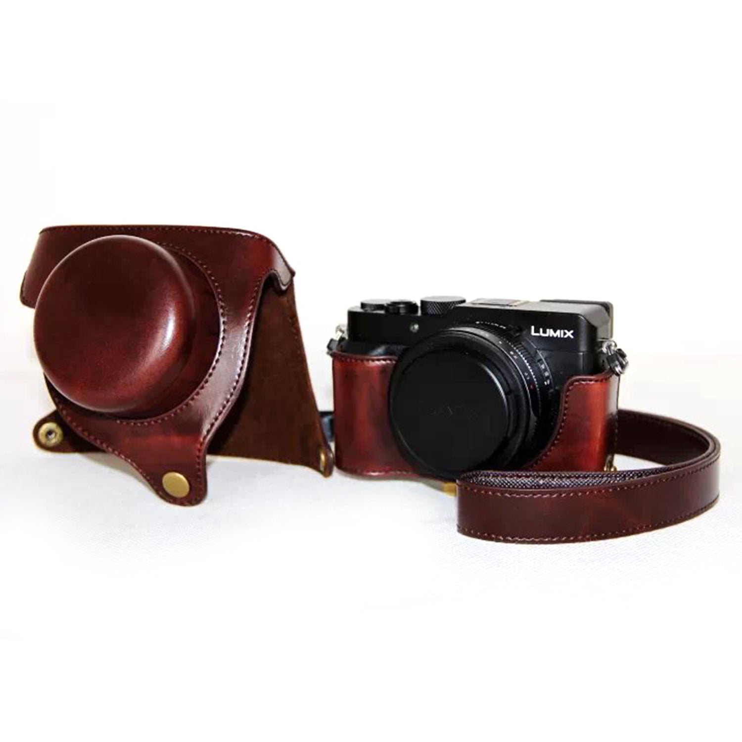 PU Leather Camera Bag Protective Shell with Strap for Panasonic LX100 - Coffee