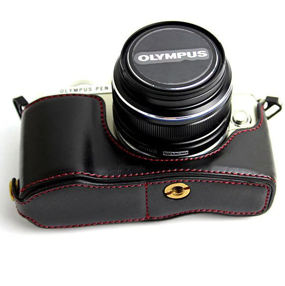 PU Leather Camera Half Bottom Case Protective Cover for Olympus E-PL7 / E-PL8 / E-PL9 - Black