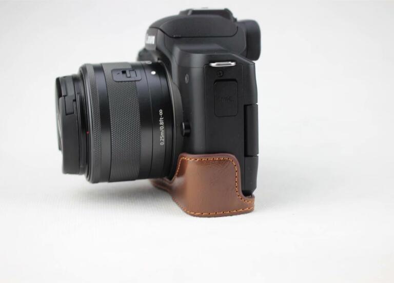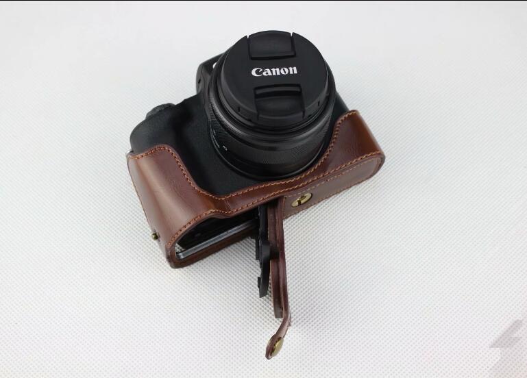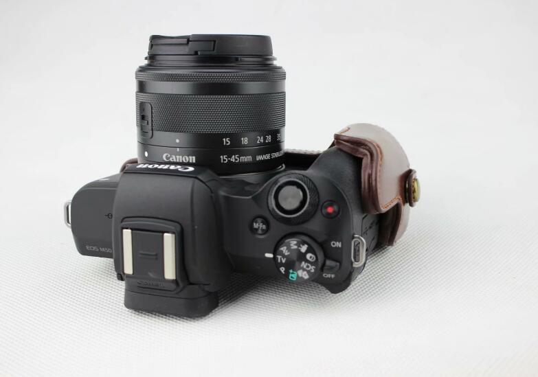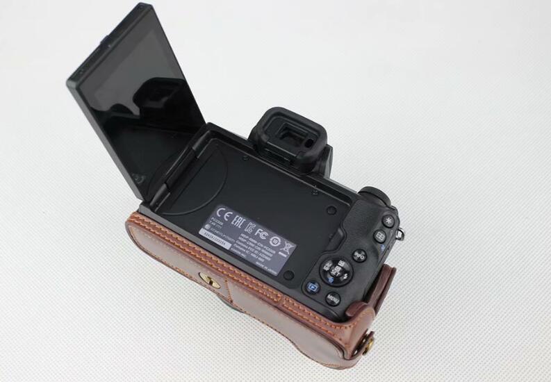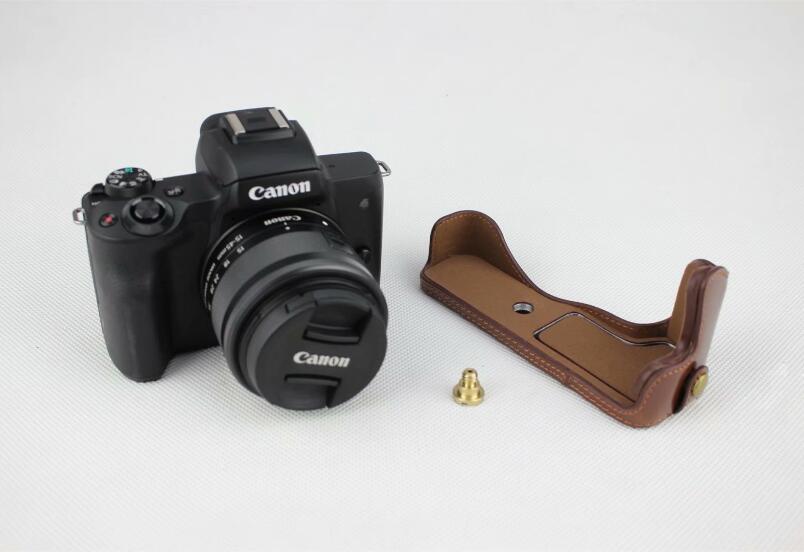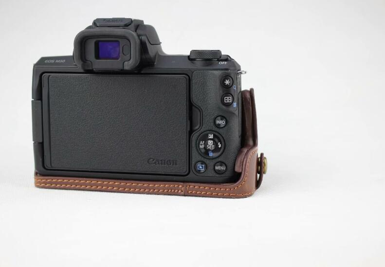 PU Leather Camera Half Case Bottom Mount Cover for Canon EOS M50 - Coffee