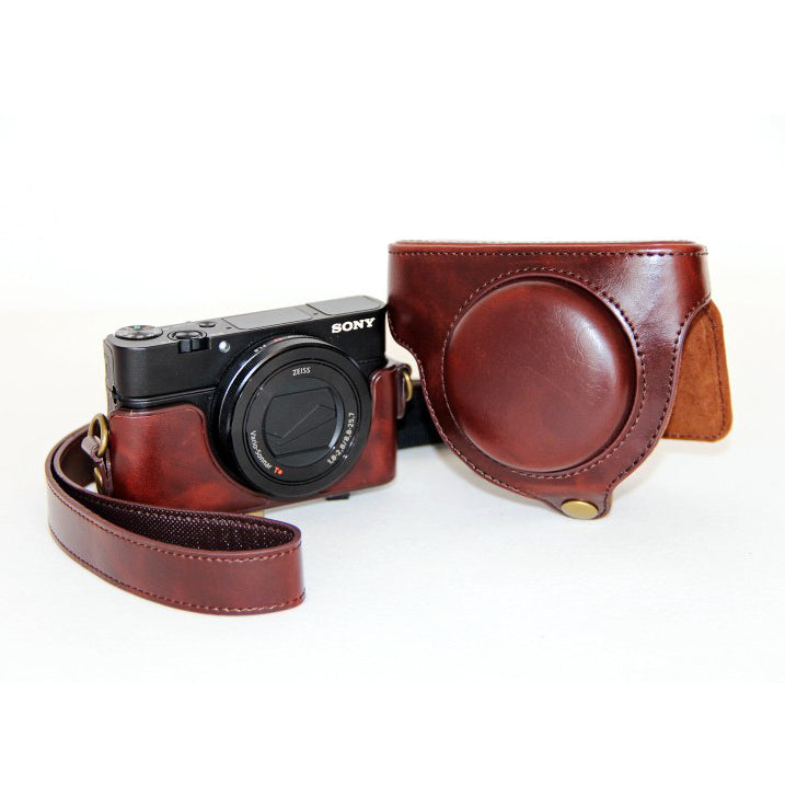 PU Leather Camera Protection Bag + Strap for Sony DSC-RX100 Mark III IV M1/M2/M3/M4/M5 - Coffee