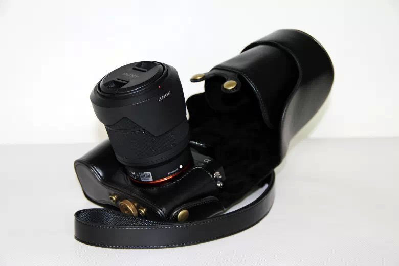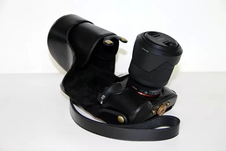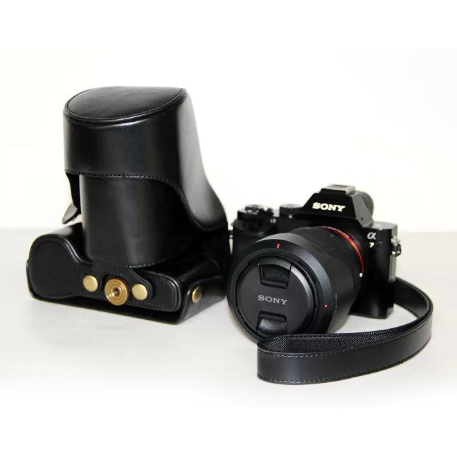 PU Leather Camera Protection Case + Strap for Sony a7R with 28-70mm Lens - Black