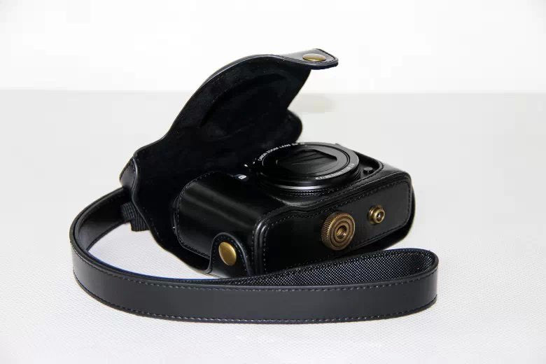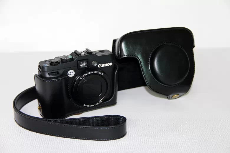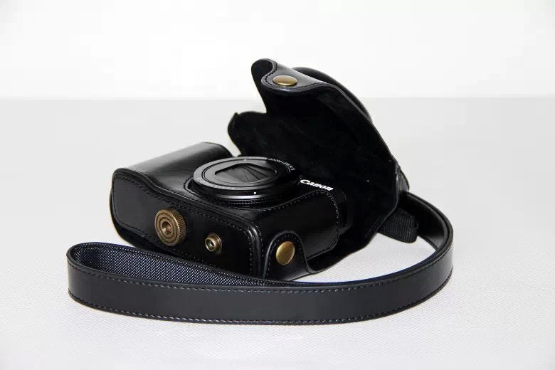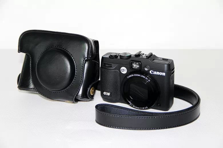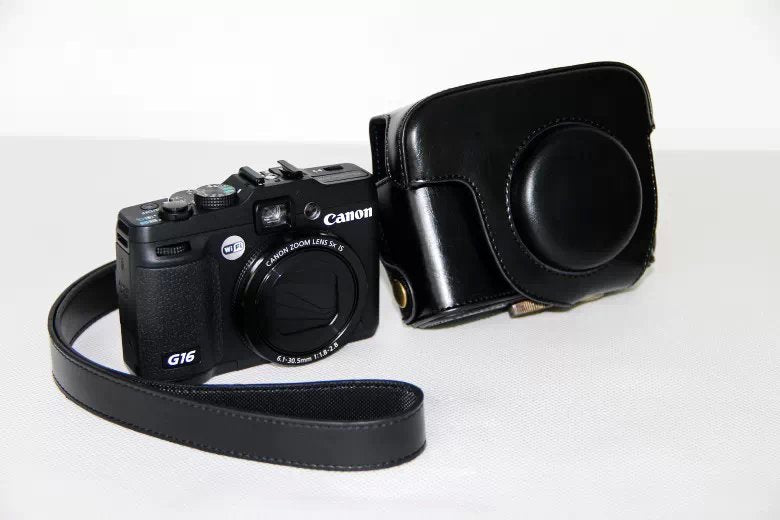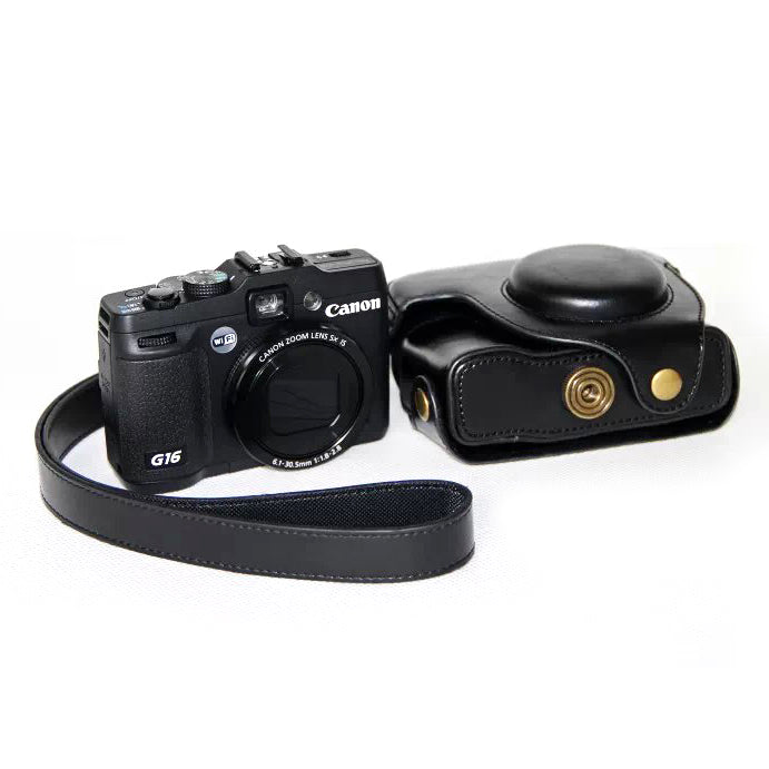 PU Leather Camera Protective Case Bag with Shoulder Strap for Canon PowerShot G15/G16 - Black