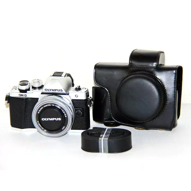 PU Leather Camera Protective Case + Strap for Olympus OM-D E-M10 Mark II / E-M10 / E-M10 MarkIII Digital Camera - Black