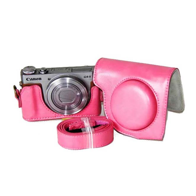 PU Leather Camera Protective Cover + Strap for Canon PowerShot G9 X / S110 / S120 Digital Cameras - Rose