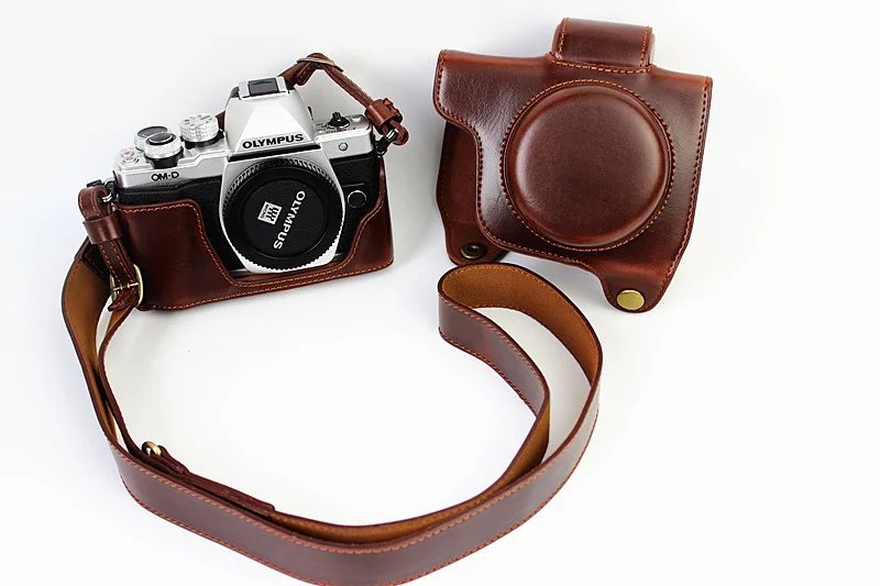 PU Leather Camera Protective Cover + Strap for Olympus EM10/EM10II Digital Camera - Coffee