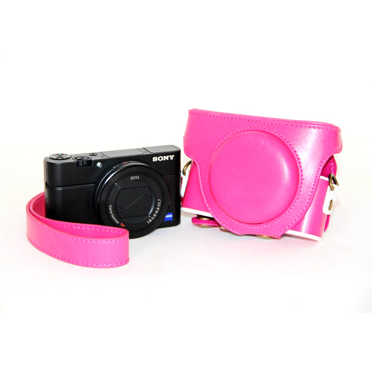 PU Leather Camera Protective Cover + Strap for Sony DSC-RX100 Mark III IV M1/M2/M3/M4/M5 - Rose