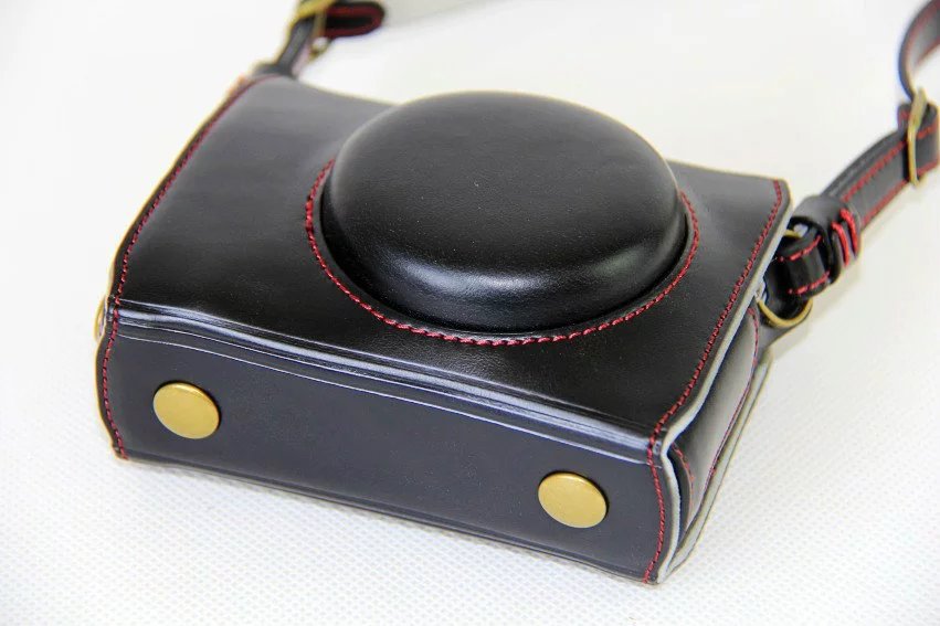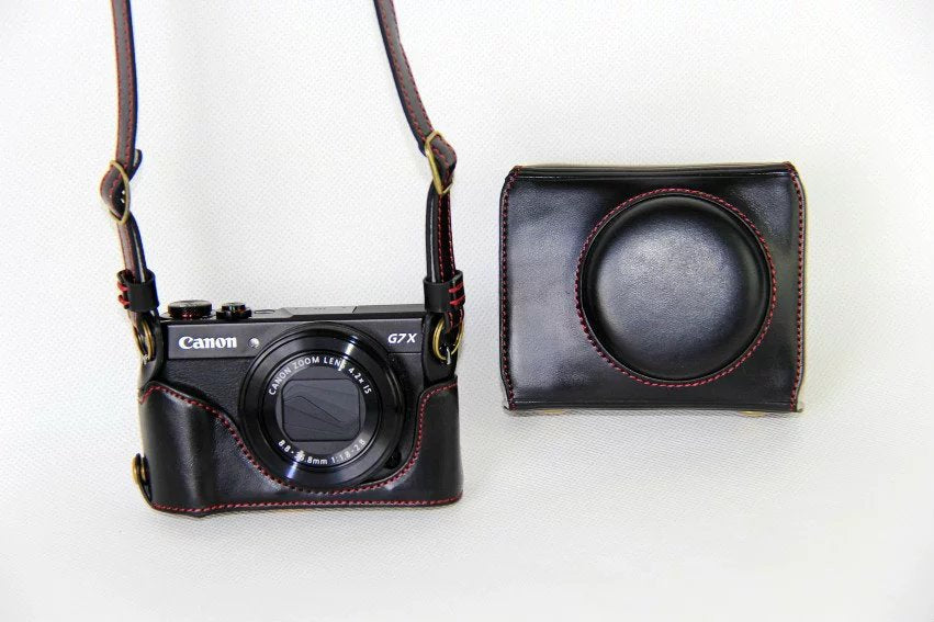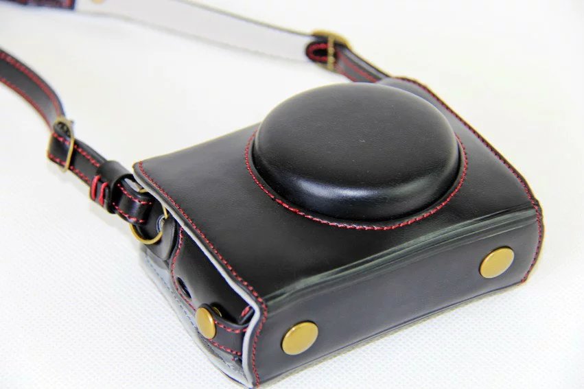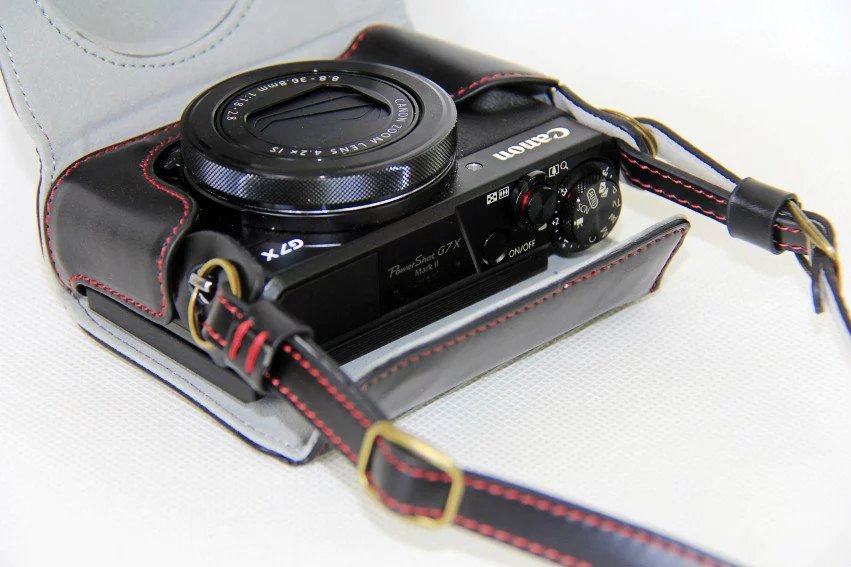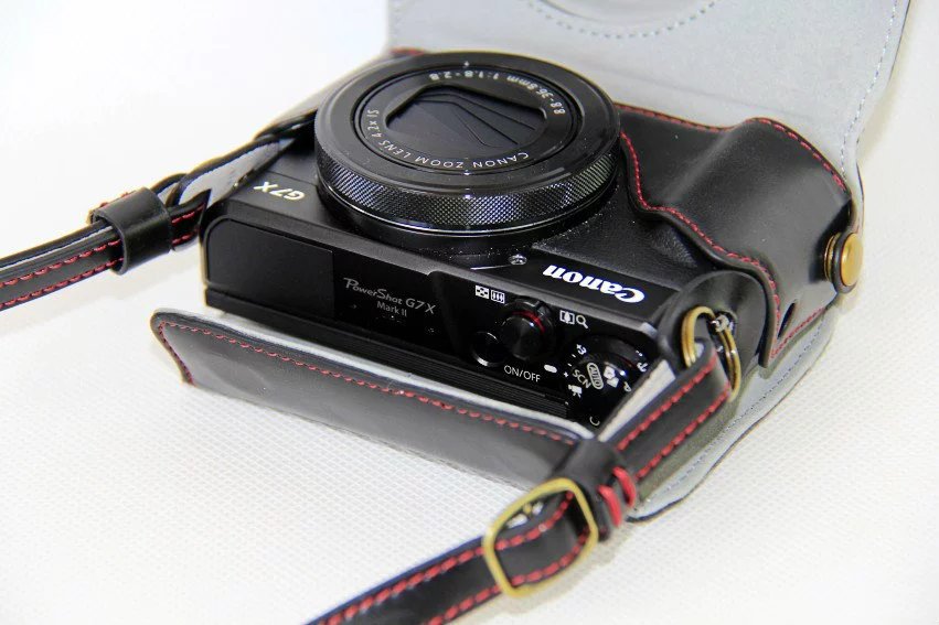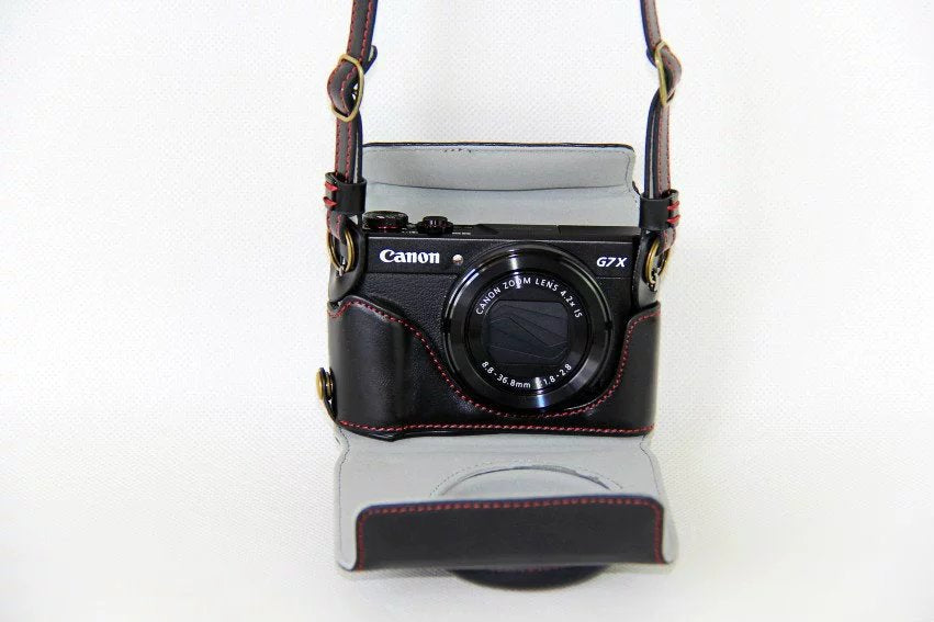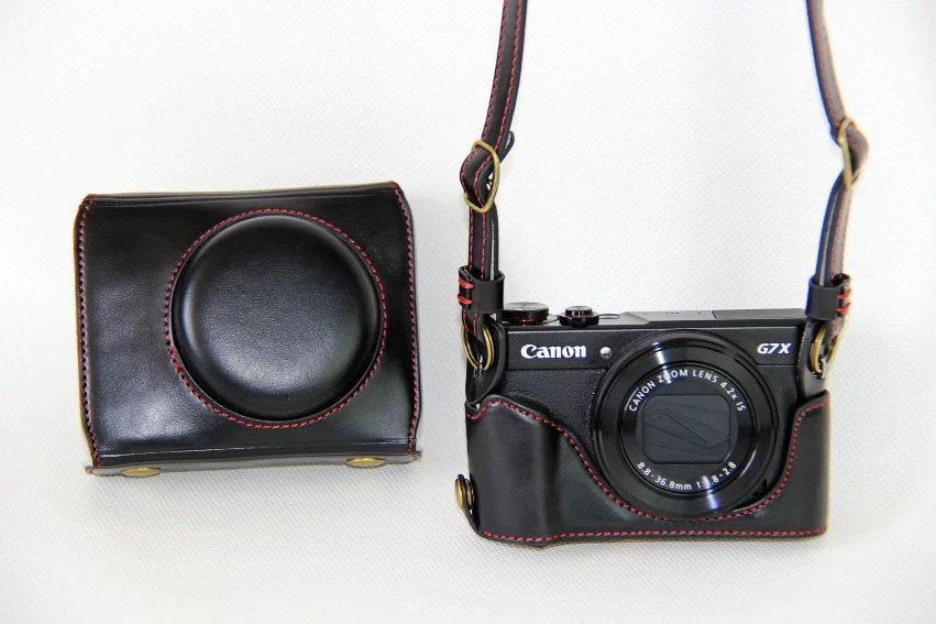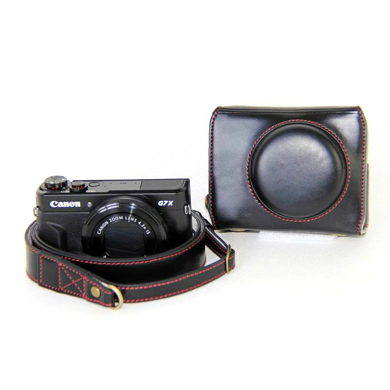 PU Leather Camera Protective Pouch + Strap for Canon PowerShot G7X MarkII Digital Camera - Black