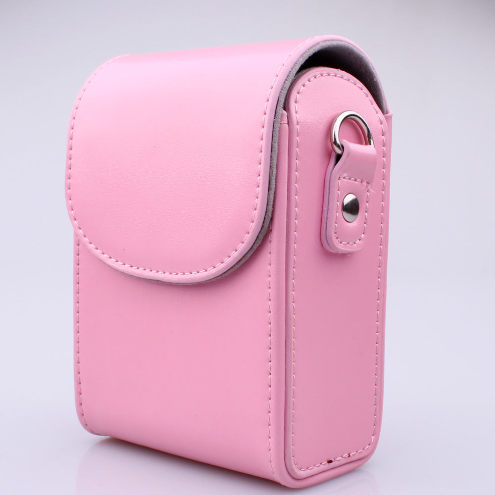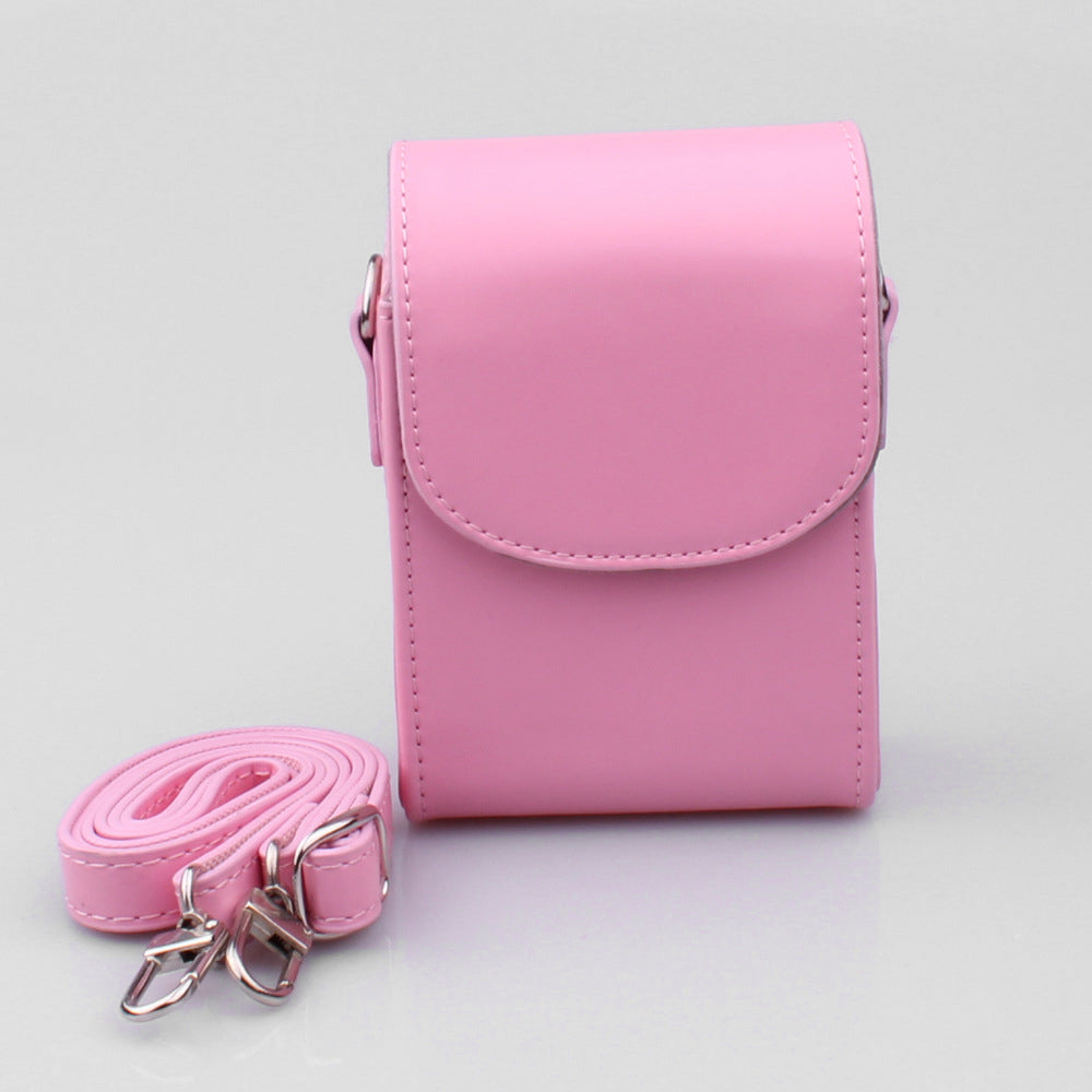 PU Leather Camera Shoulder Bag Waterproof Shoulder Camera Bag for Hiking Camping - Pink