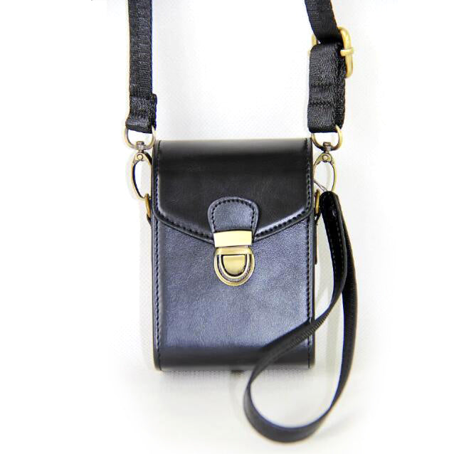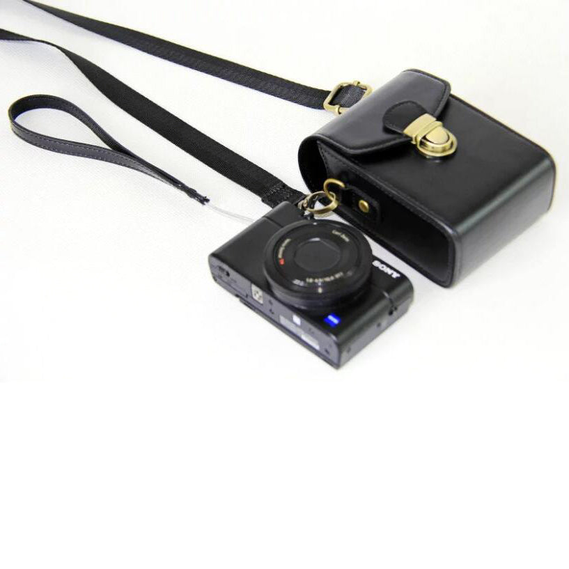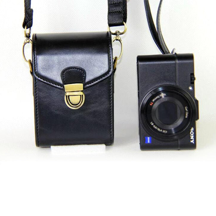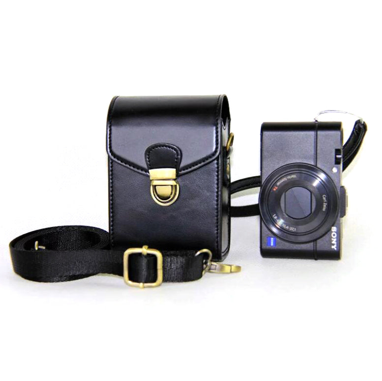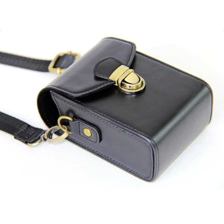 PU Leather Camera Shoulder Bag Waterproof Shoulder Camera Bag for Hiking Camping Trekking Cycling - Black