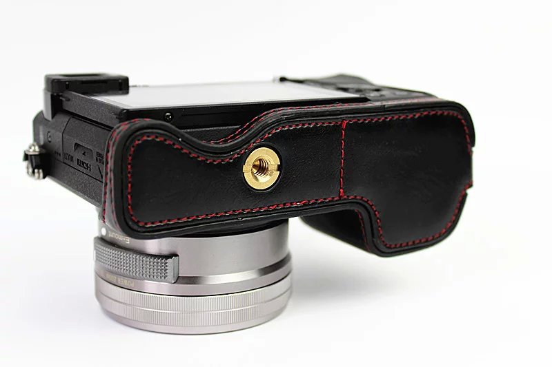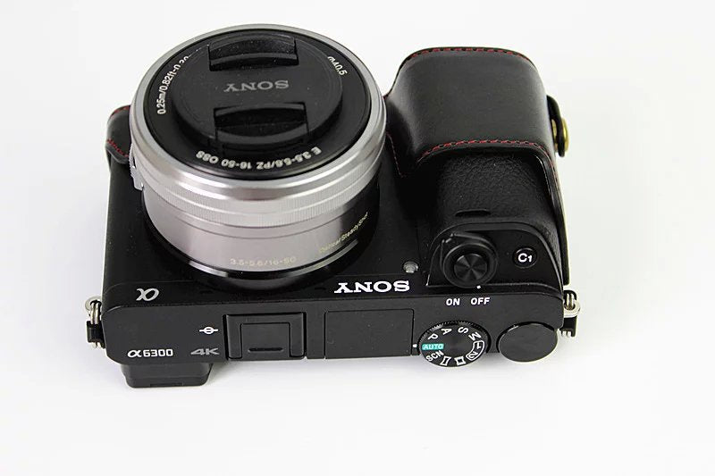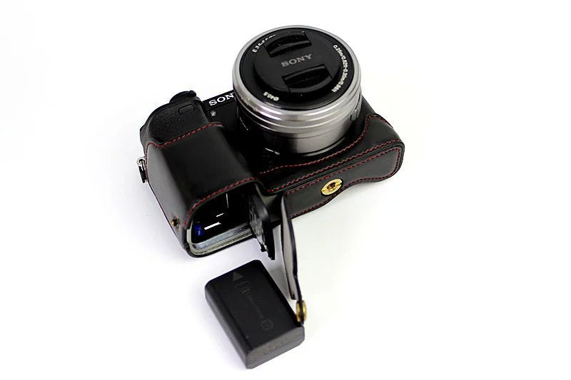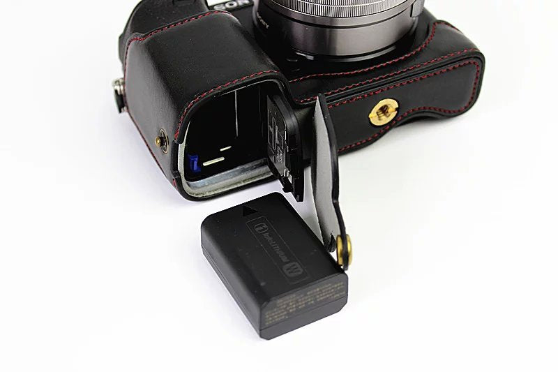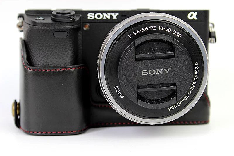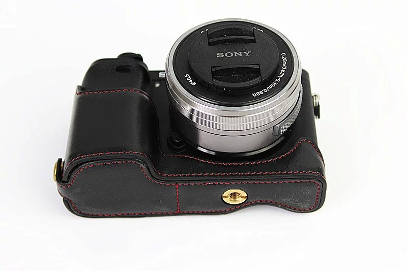 PU Leather Half Bottom Camera Protective Case for Sony A6000/A6300 - Black