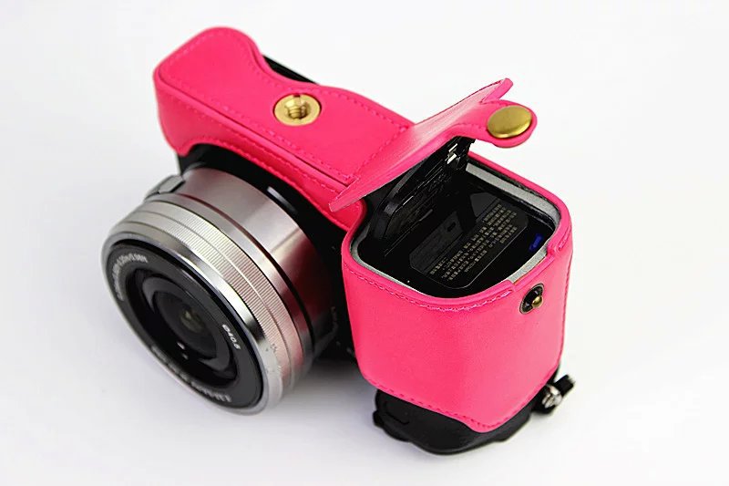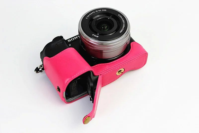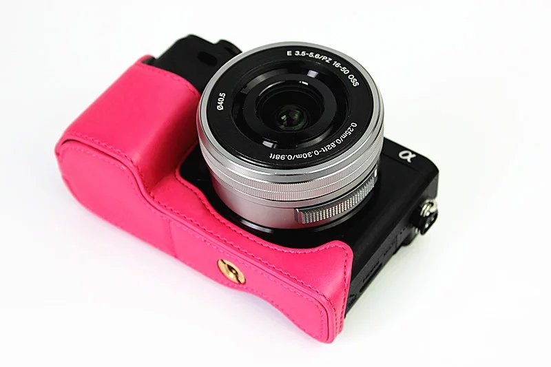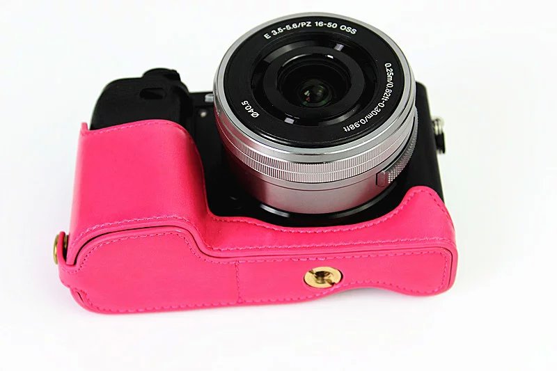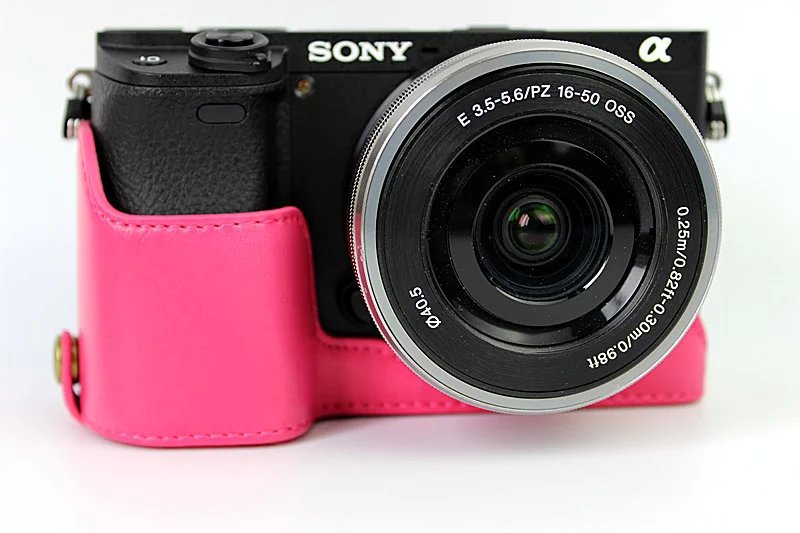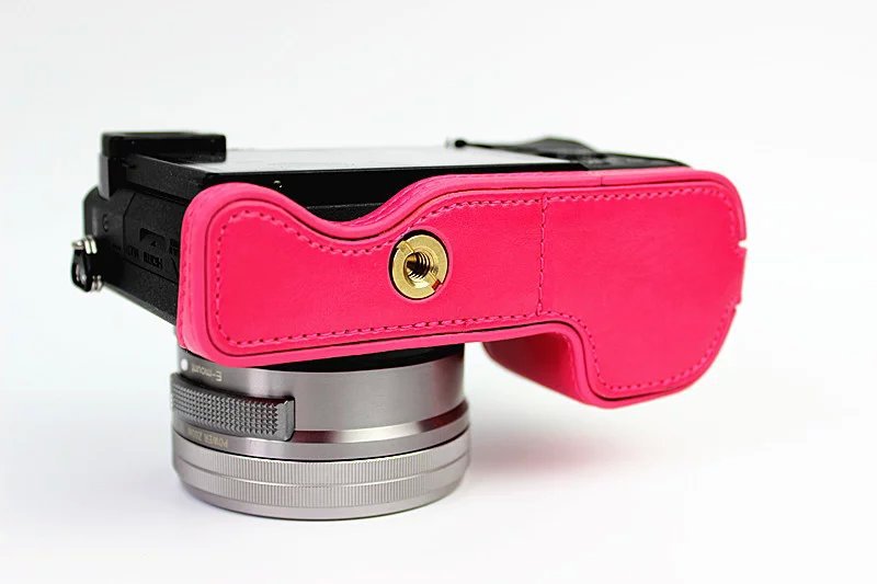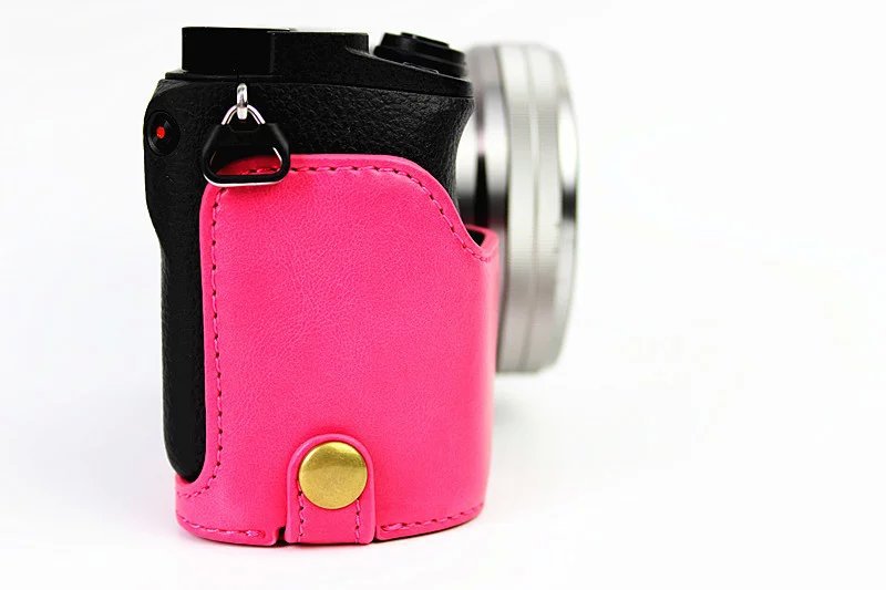 PU Leather Half Bottom Camera Protective Cover for Sony A6000/A6300 - Rose