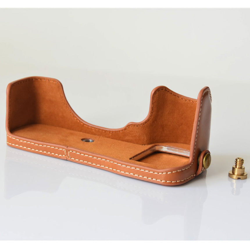 PU Leather Half Bottom Camera Protective Cover for Sony A73/A9 - Brown