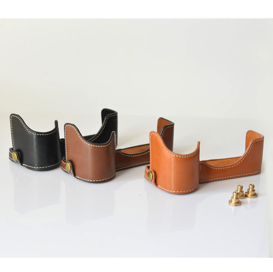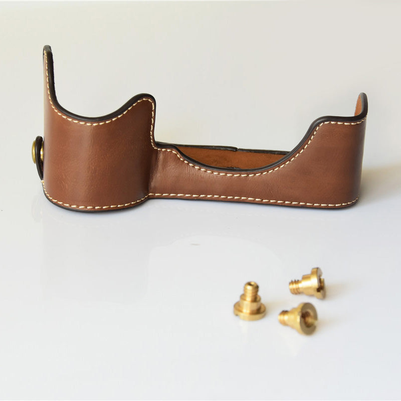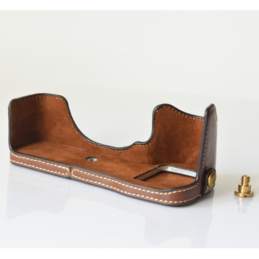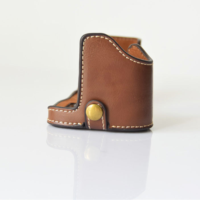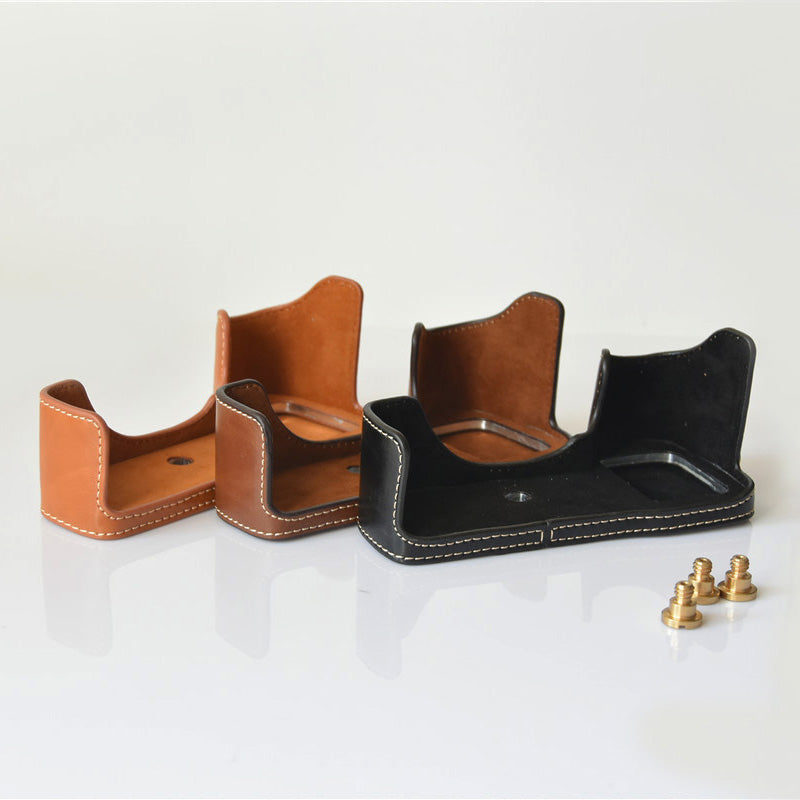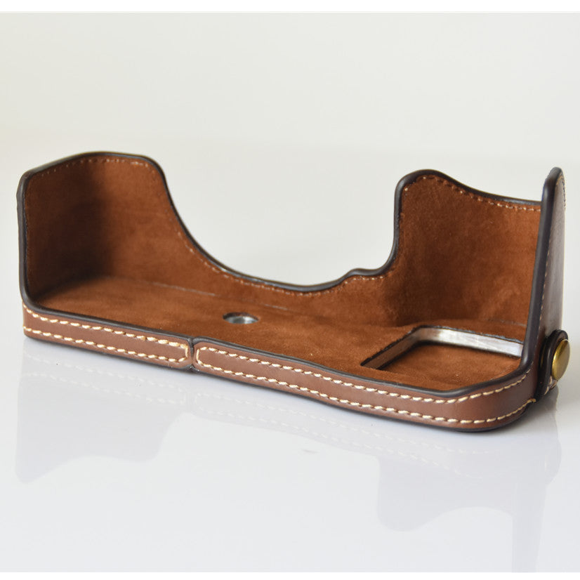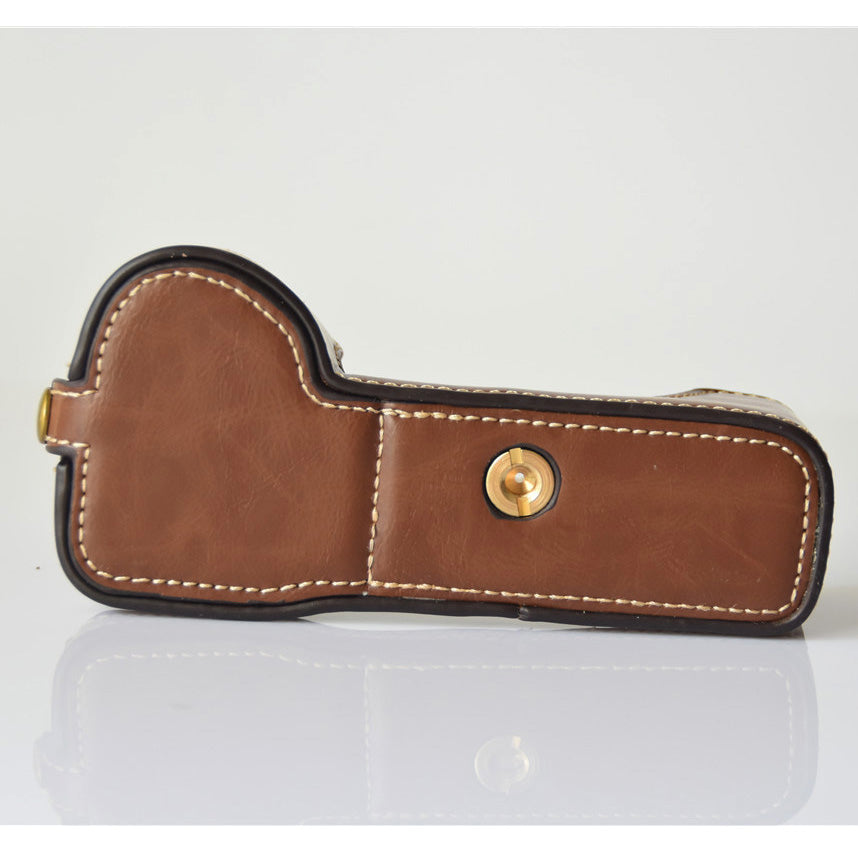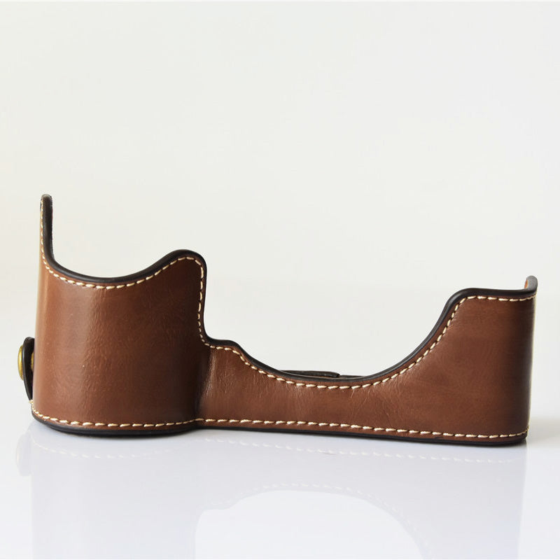 PU Leather Half Bottom Camera Protective Shell for Sony A73/A9 - Coffee