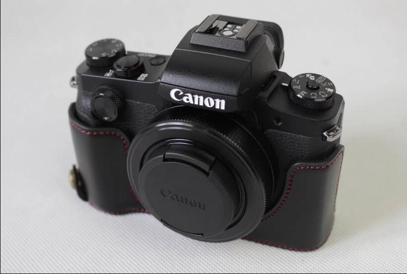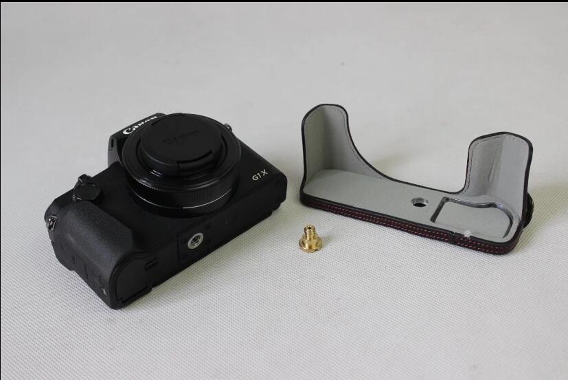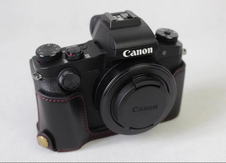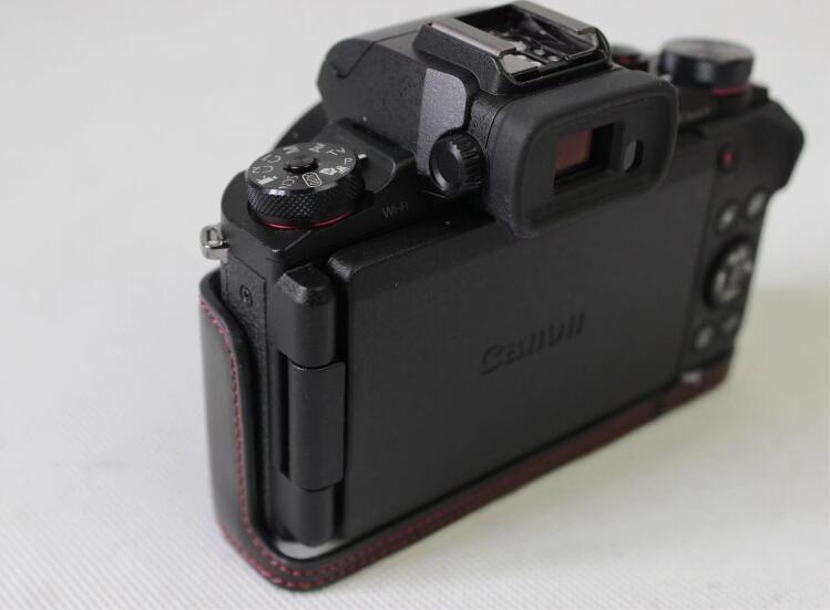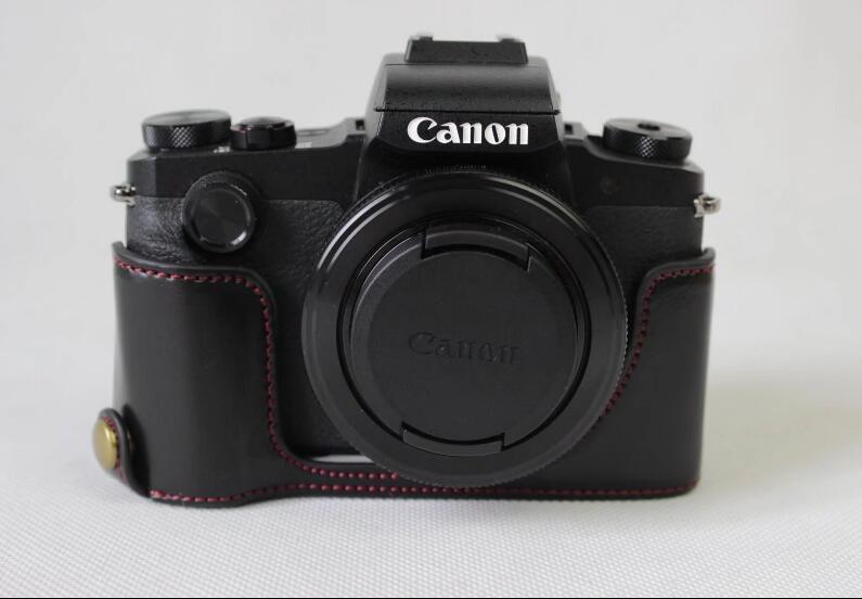 PU Leather Half Camera Case Bag for Canon Powershot G1XIII - Black