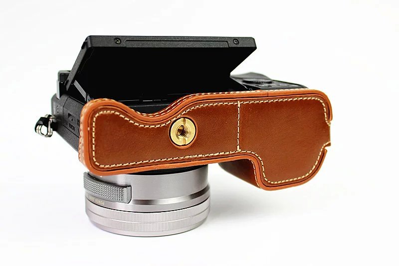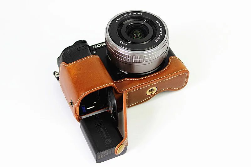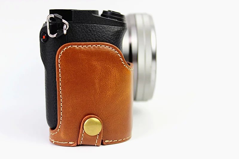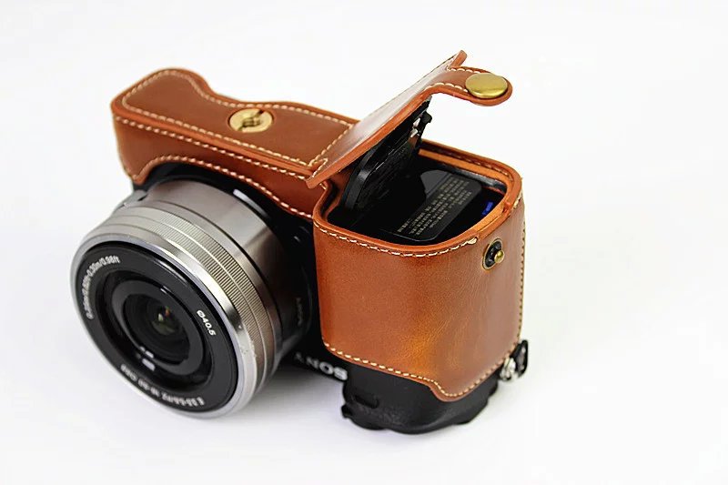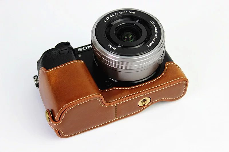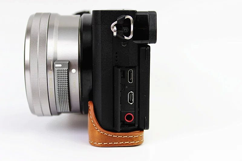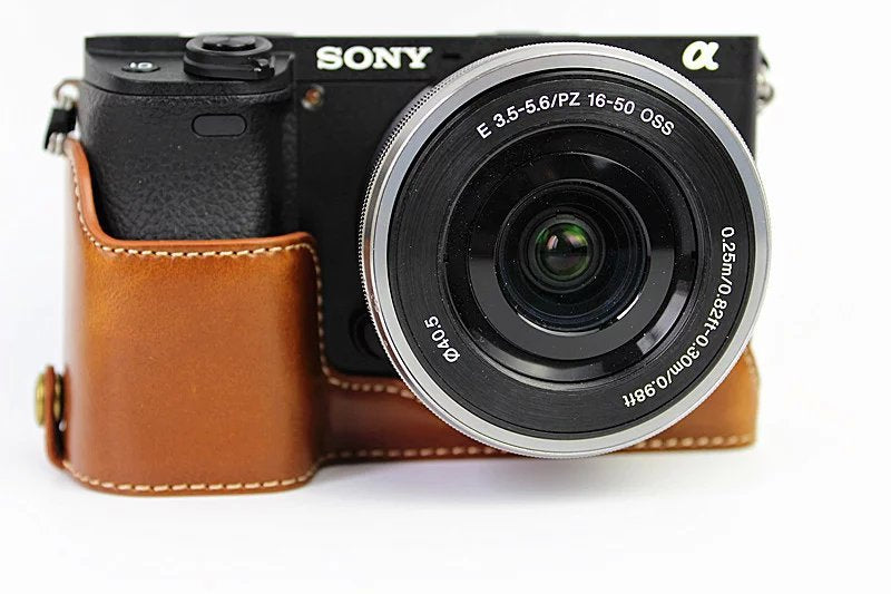 PU Leather Half Camera Case Protective Cover for Sony A6000/A6300 - Brown