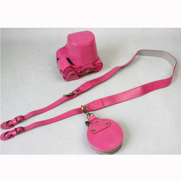 PU Leather Protection Case Cover + Strap + Camera Lens Bag for Canon EOS M6 with 15-45mm Lens - Rose