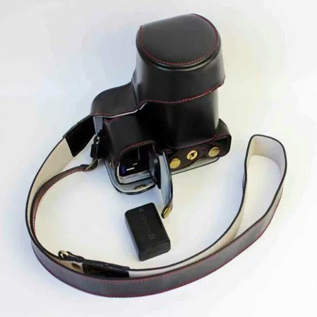 PU Leather Protective Camera Case Bag for SONY ILCE-6000/ILCE-6300/a6000/a6300 18-55mm - Black
