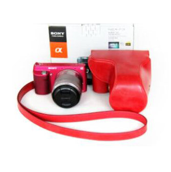 PU Leather Protective Camera Cover Shell for Sony NEX-F3 18-55mm - Red