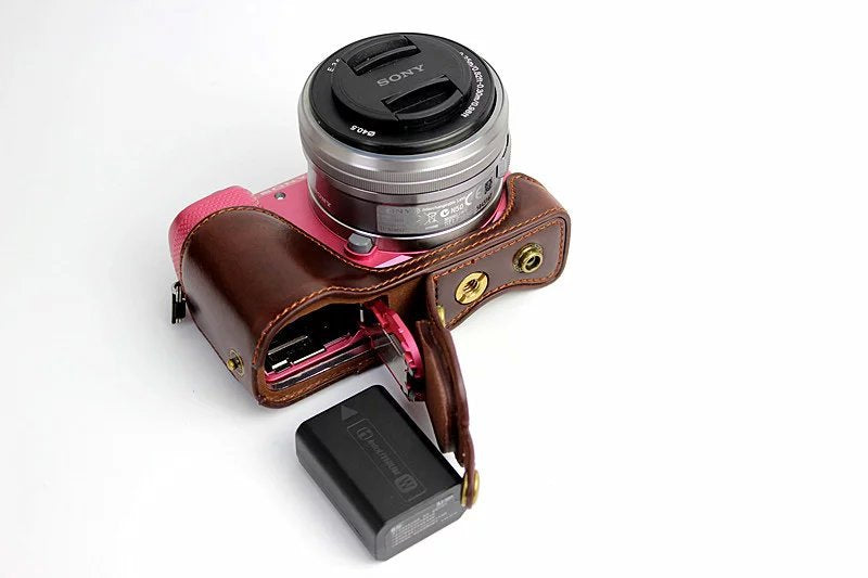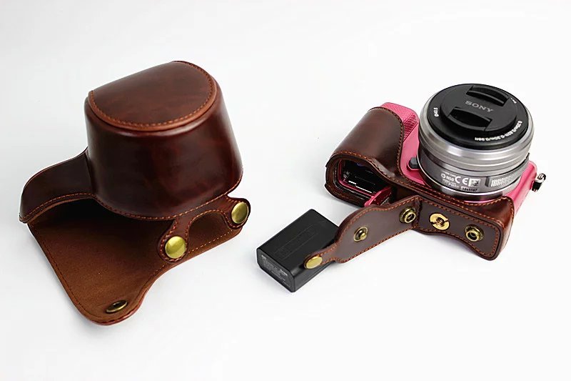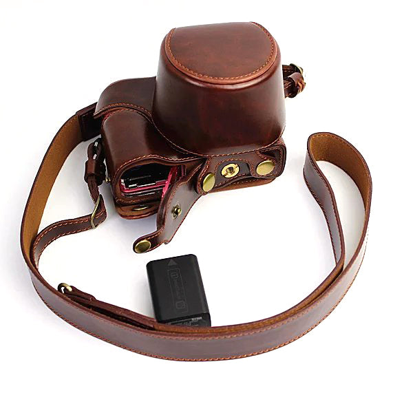 PU Leather Protective Case + Strap for Sony NEX-3N/Alpha a5000/Alpha a5100 with 16-50mm Lens - Coffee