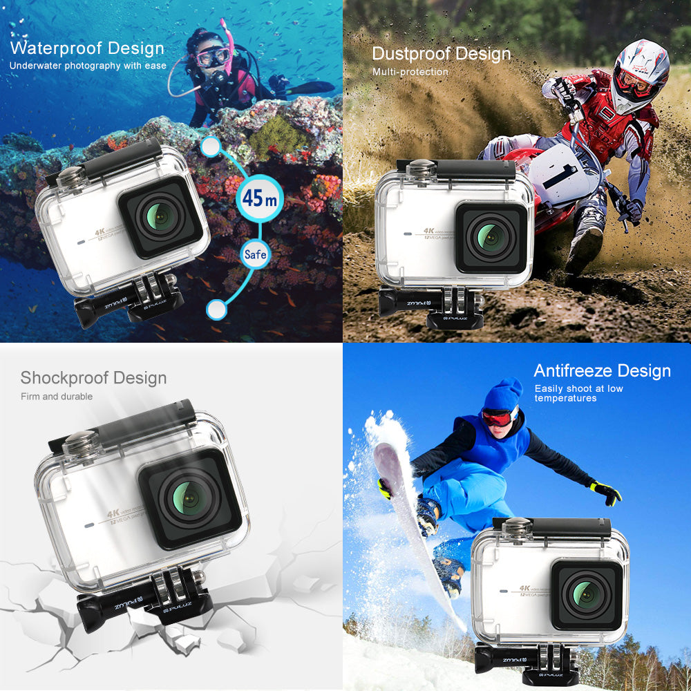 45 meters full body underwater waterproof design, ideal for diving, snorkeling, swimming and other water sport activities