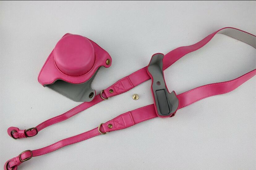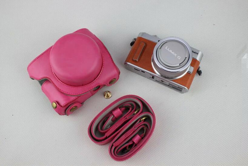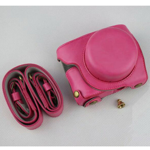 Rose - Detachable Base PU Leather Camera Protective Bag + Strap for Panasonic GF10
