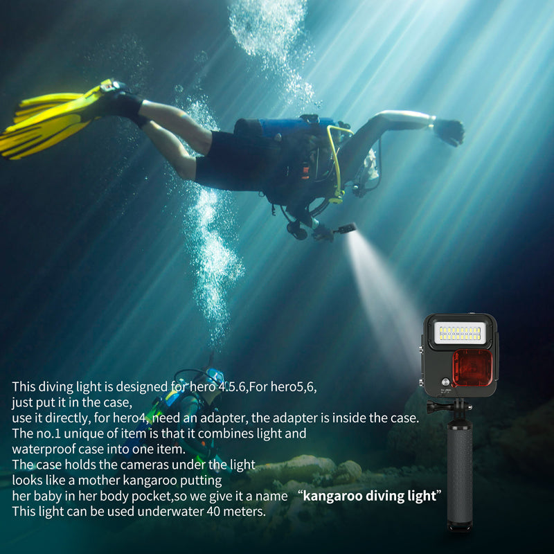 Designed for GoPro hero 3+ /4/5/6. For hero 5 and 6, just put it in the case, use it directly; For hero 4, need an adapter, the adapter is inside the case