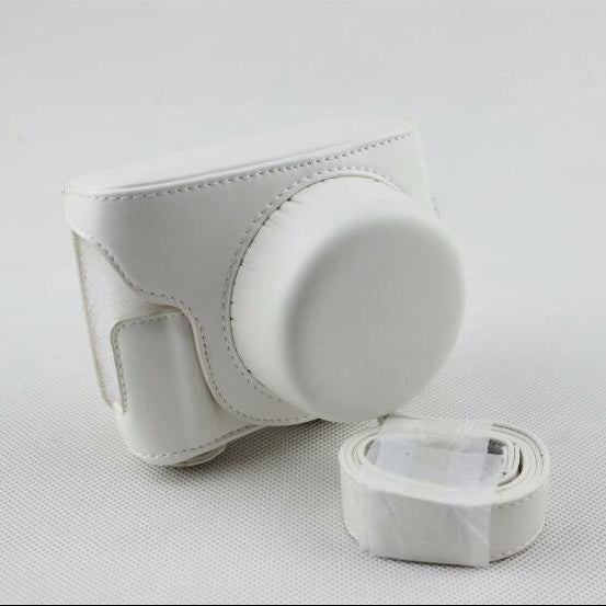White - PU Leather Camera Protective Bag + Strap for Panasonic GF7/GF8/GF9/GF10