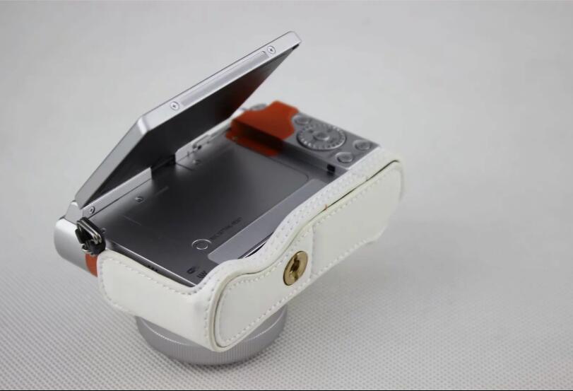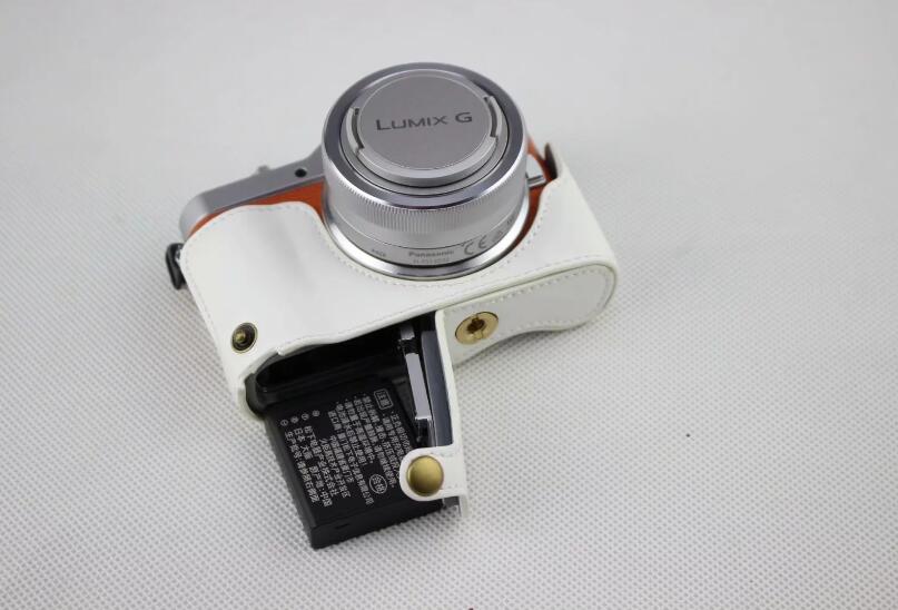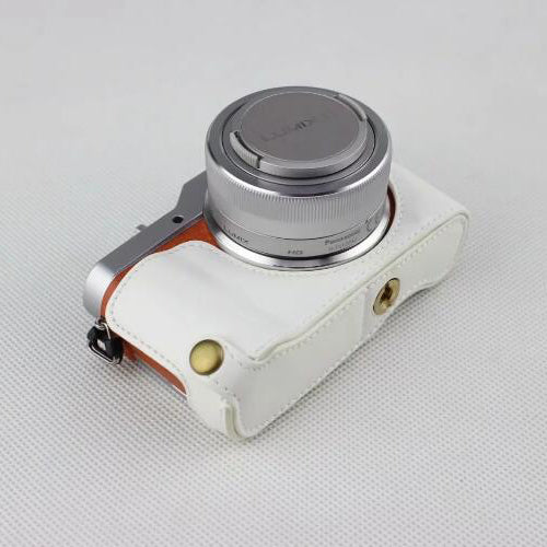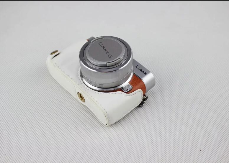 White - PU Leather Half Camera Case Bag Cover Protector for Panasonic GF7/GF8/GF9/GF10 Camera