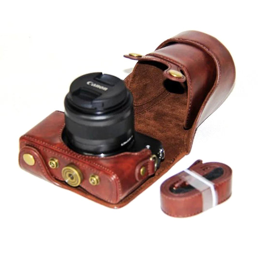 PU Leather Camera Protective Pouch + Shoulder Strap for Canon SX720/ SX700/ SX730/ SX740 HS - Coffee