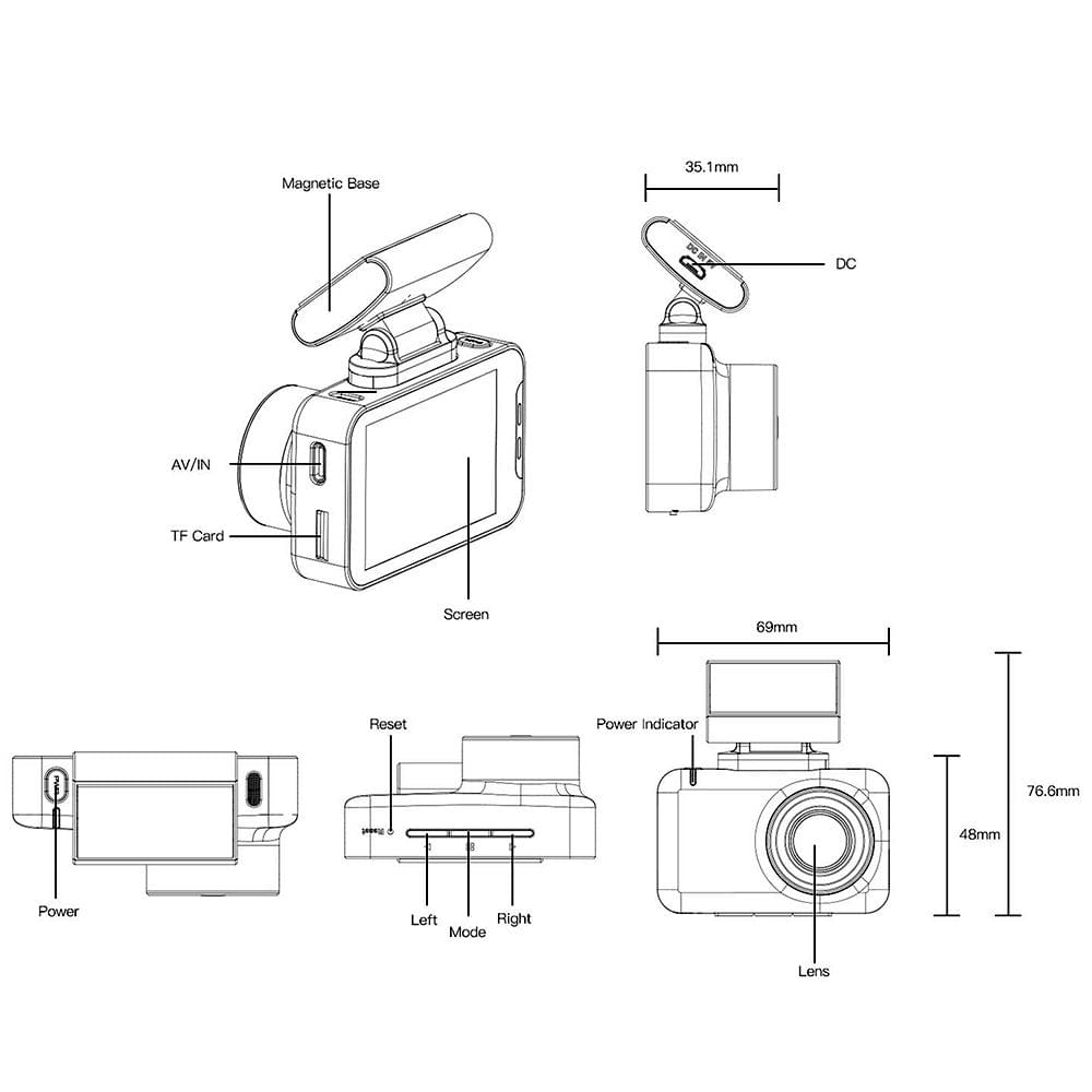 Features:FULL HD 1080P video recorder: Record wonderful journey the recording screen is clearer.Picture quality wider vision safe driving more secure.With 6 glass double lens the 2.35-inch design does not block the view ensuring that the interior of the vehicle is both beautiful and safe.The magnetic stand design ensures that the driver does not have to worry about theft when using the instrument camera when leaving the vehicle.Built-in super night vision gravity sensing motion detection G-Sensor loop recording 24-hour parking monitoring H.265 compressed files etc.It can support saving video after power off achieving double protection for your safety. Record strong evidence of any incident involving your vehicle to support the facts of any road accident.Specifications:Brand: AnytekModel: Z1NDisplay screen:: 2.35 inchVideo: MOV pre-recorded 4K@30fps after pulling 1920*1080@30fpsPhoto: 12M/8M/5MLens: 6G 135 degree wide angleBattery: Super capacitorLanguage: Simplified Chinese Traditional Chinese English French Spanish Portuguese German Swedish Japanese Thai etc.Compression format: H.264 GPS: Not supportedWIFI: Not supportedHDMI: Not supportedAV-IN (back pull): not supportedAV-OUT: Not supportedBuilt-in memory (NAND or NOR): 2Mb SPI FlashInternal cache: 128MMemory Card: TF(maximum support 32G)Item size: approx. 70*44*34mmItem weight: 350g / 0.77lbPackage size: 200*160*65mm / 7.87 * 3.5 6.30* 2.56inPackage weight: 580g / 20.46lbPackage list:1*Car DVR Camera1* GPS step-down line1* 3 Meters glue1* Data line1* Manual