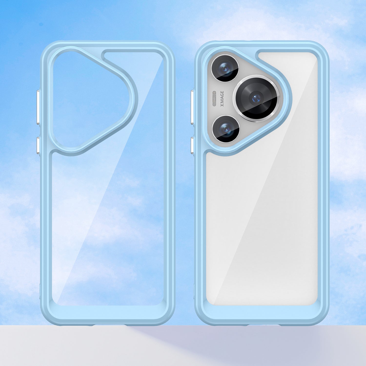 For Huawei Pura 70 Pro Phone Case TPU Frame Clear Acrylic Bump Proof Phone Cover - Blue