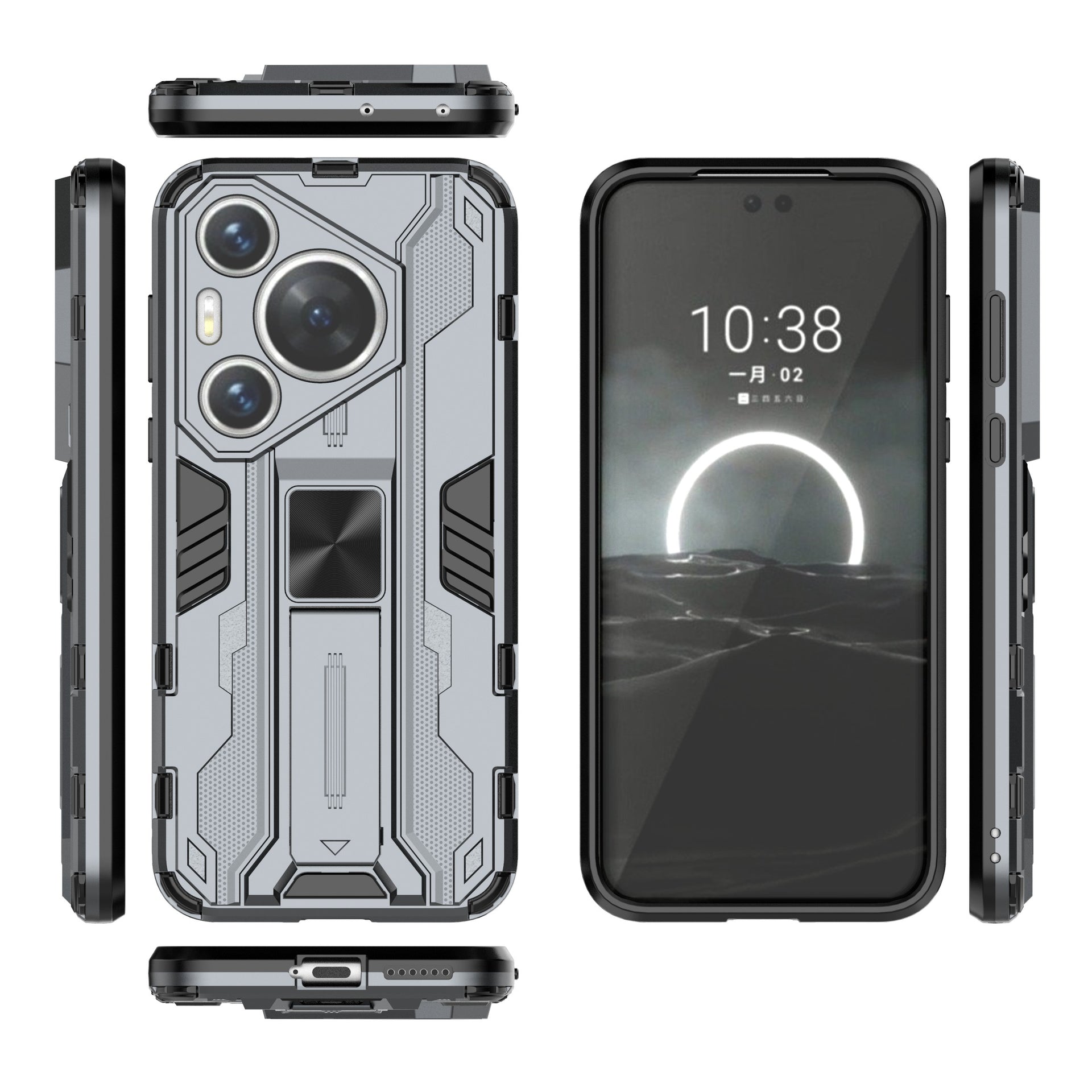 For Huawei Pura 70 Pro / Pura 70 Pro+ Case Kickstand PC + TPU Phone Back Cover - Grey