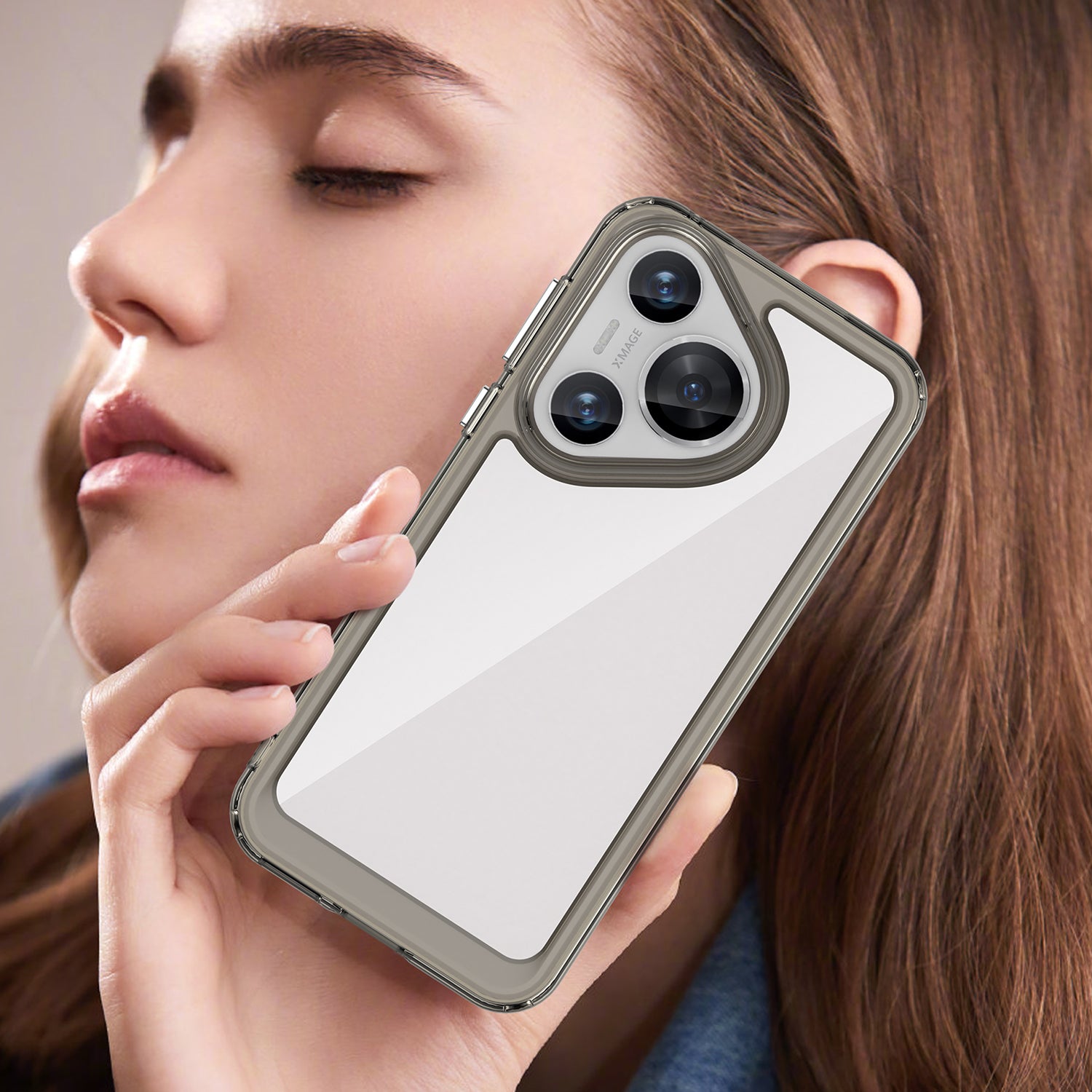 For Huawei Pura 70 Protective Case TPU Frame Clear Acrylic Phone Cover - Transparent Grey