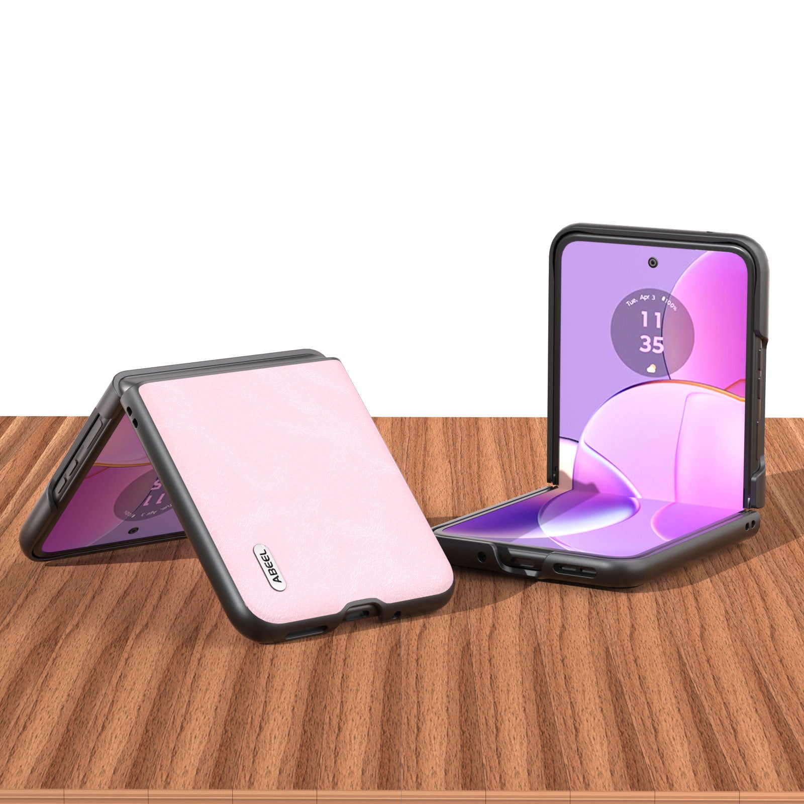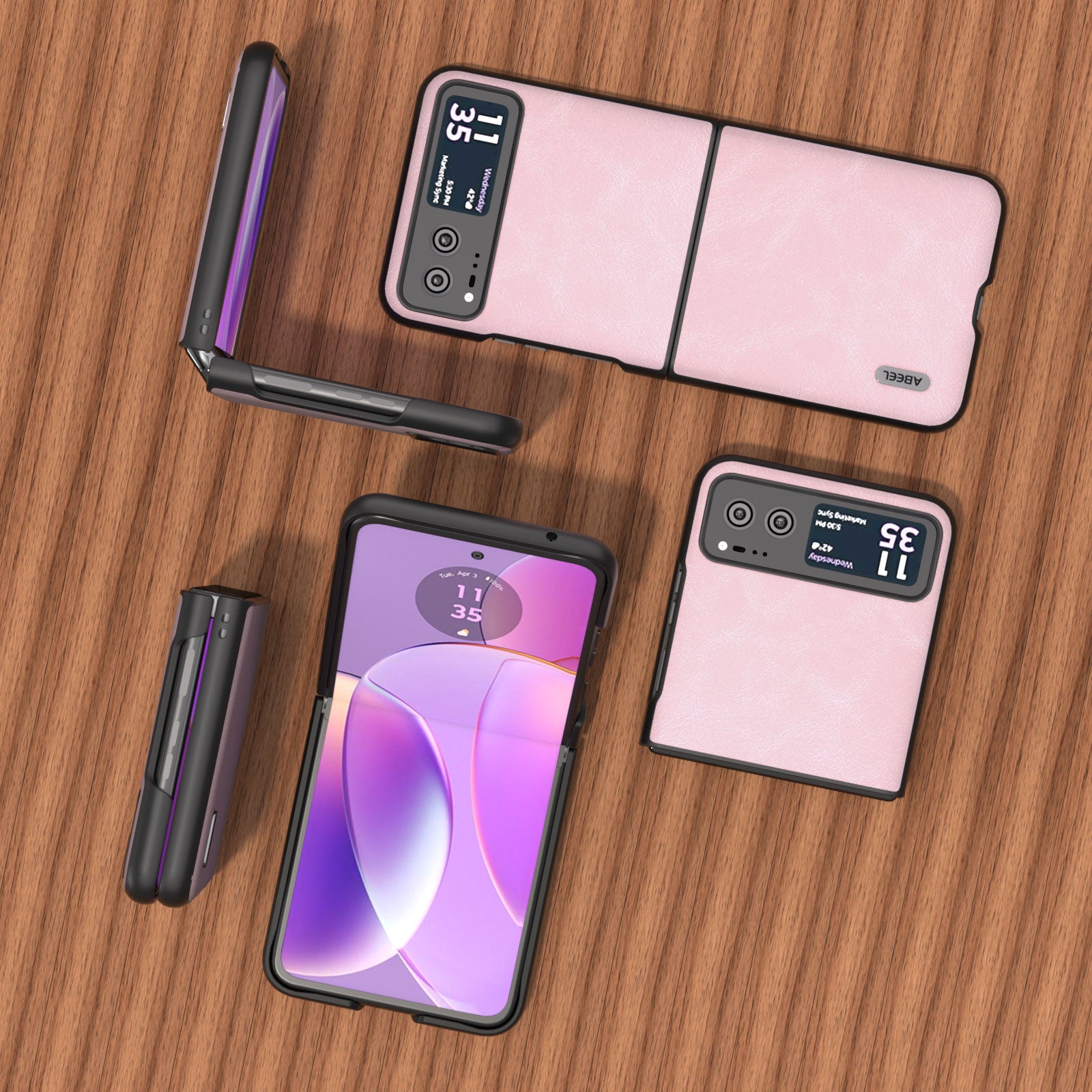 Uniqkart Folding Phone Case for Motorola Razr 40 5G PU Leather Coated PC Cowhide Texture Cover - Pink
