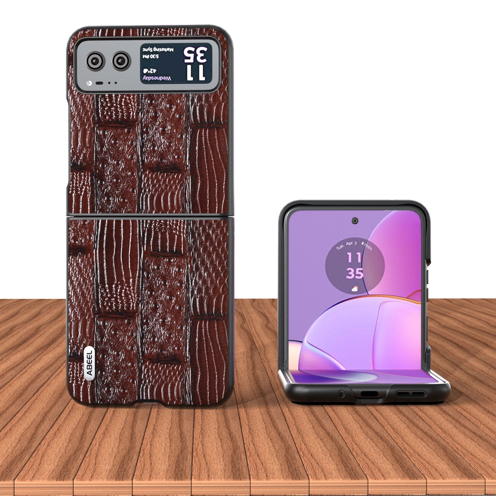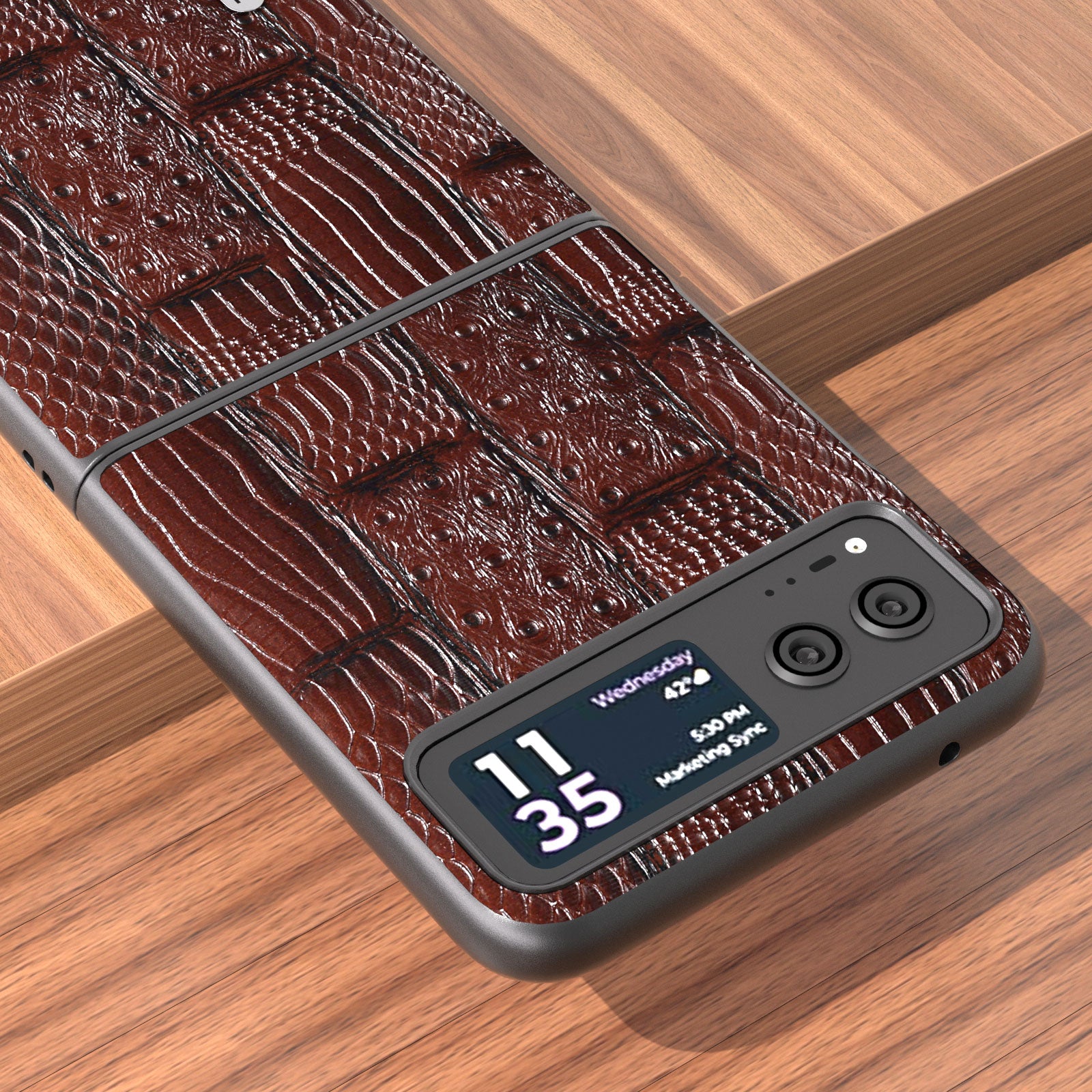 Uniqkart for Motorola Razr 40 5G Mahjong Texture Cover Genuine Cow Leather+PC Anti-Shock Phone Case - Brown