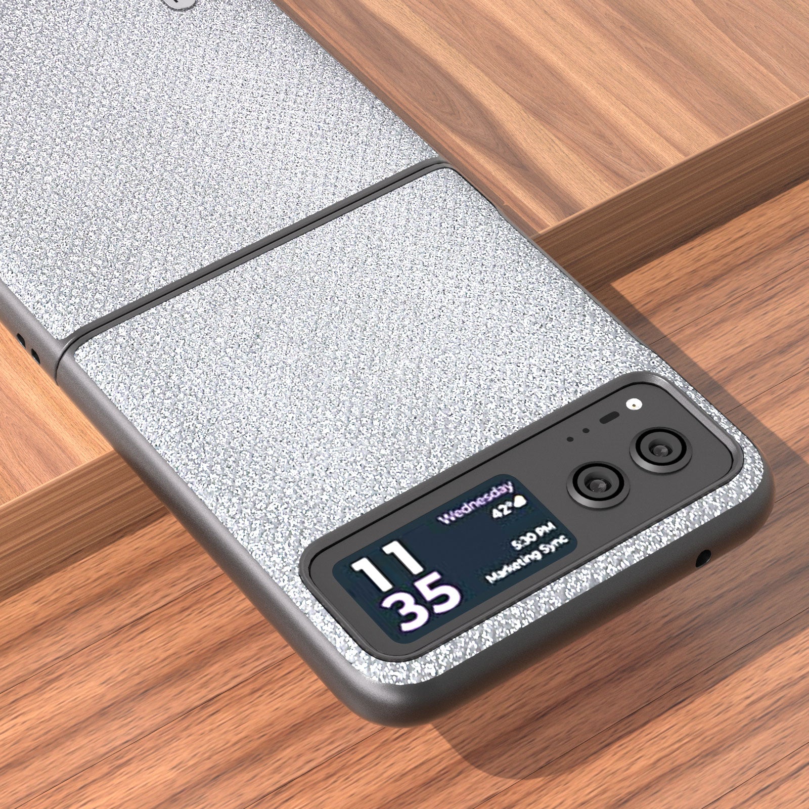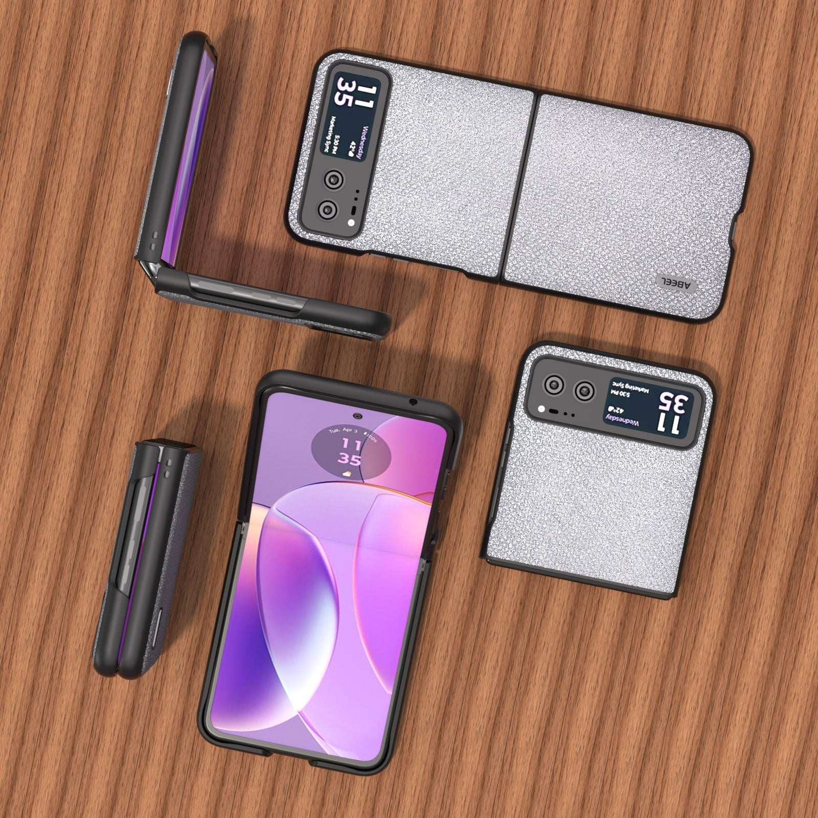 Uniqkart For Motorola Razr 40 5G Rhinestone Texture Phone Case PU Leather + Hard PC Shell Ultra Thin Cover - Silver