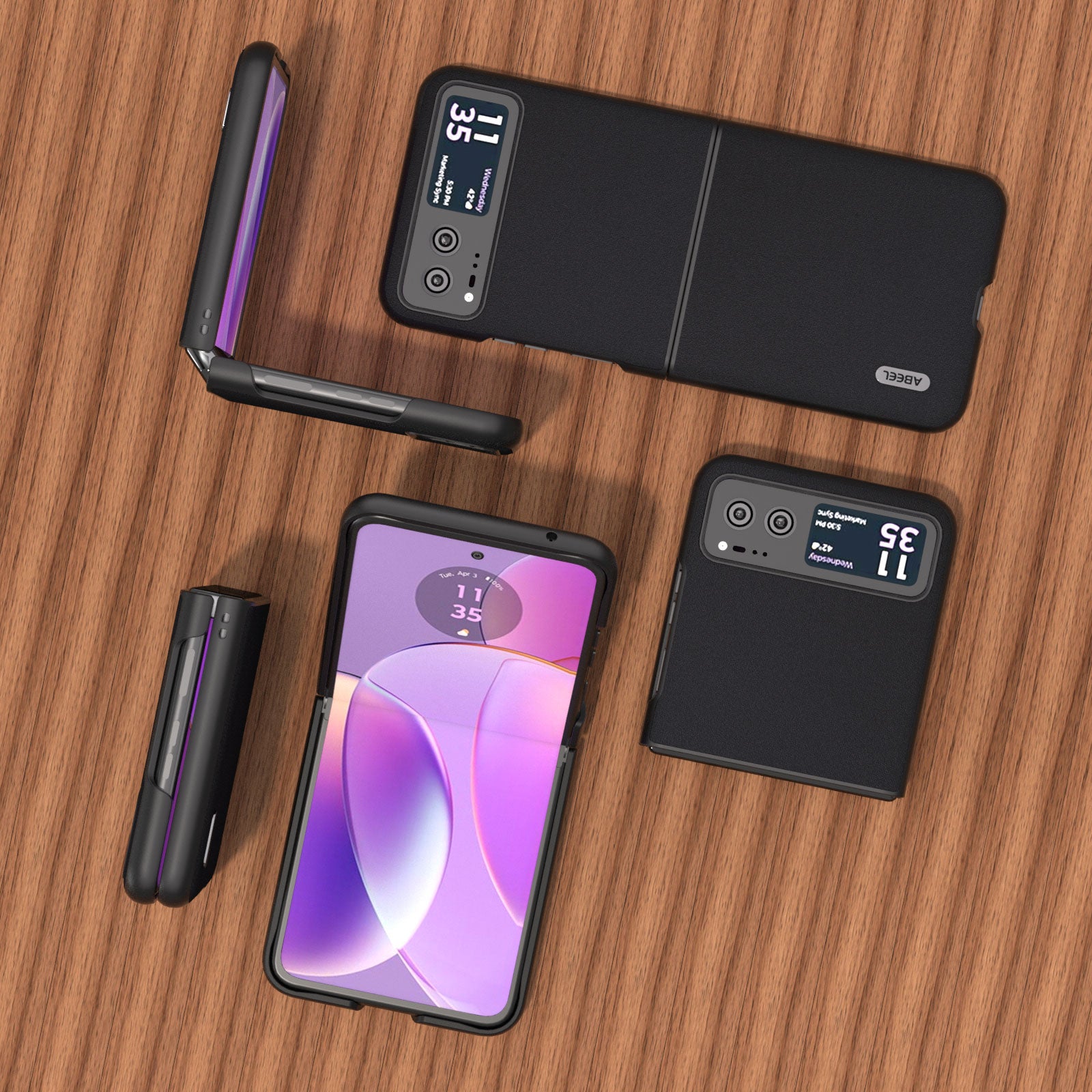 Uniqkart For Motorola Razr 40 5G Soft Silky Feeling Phone Case Cowhide Leather + PC Anti-Scratch Cover - Black