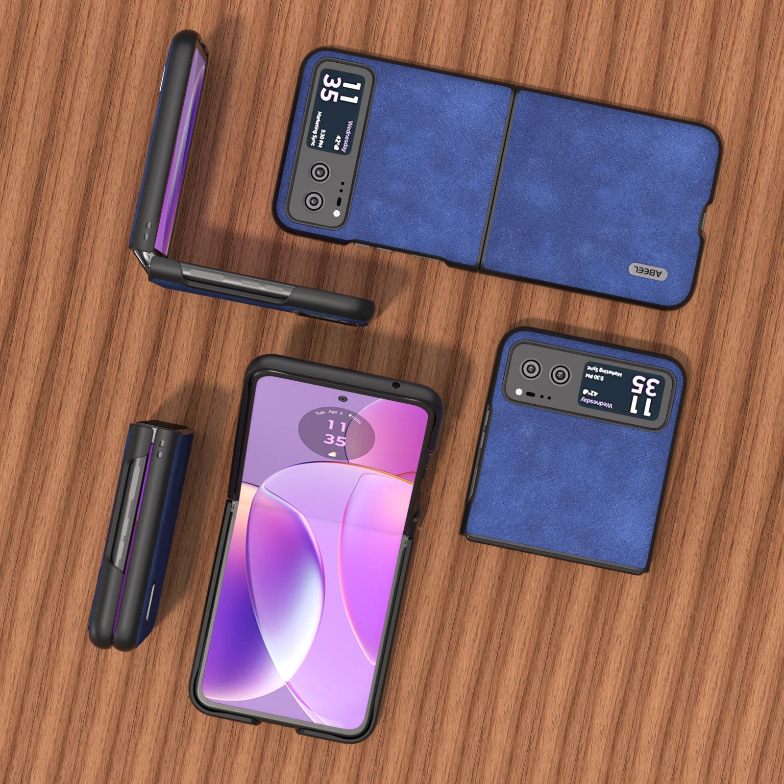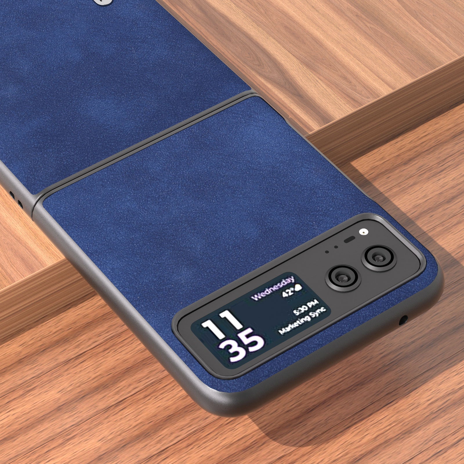 Uniqkart For Motorola Razr 40 5G Textured PU Leather + Hard PC Shell Ultra Thin Phone Case Cover - Blue